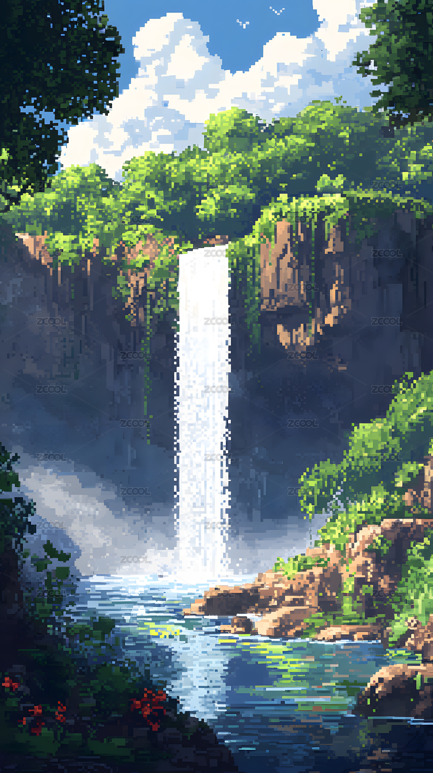 像素风格瀑布森林