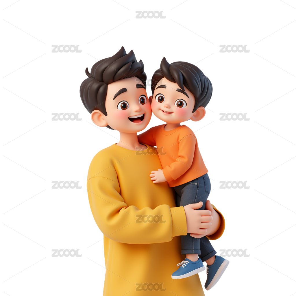 母亲节母子拥抱幸福快乐庆祝节日3D插画
