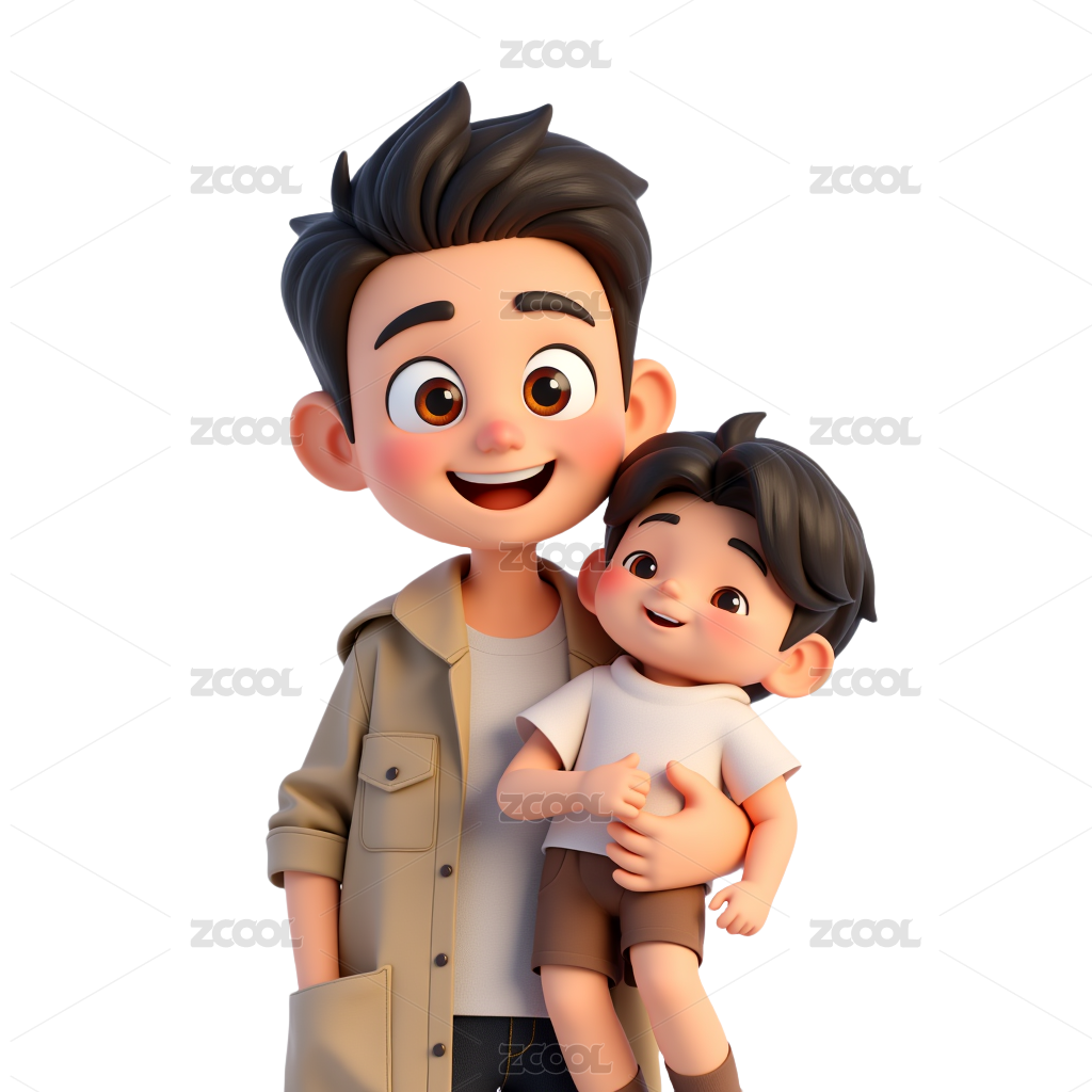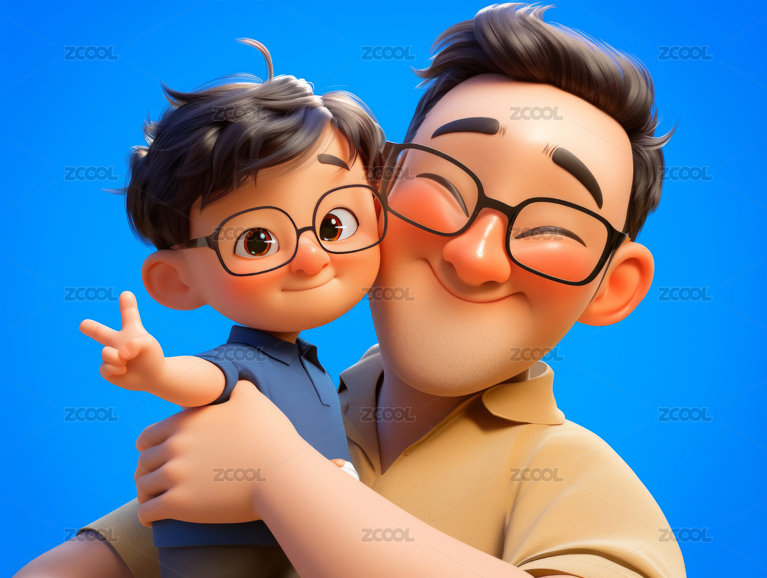 手绘,卡通,父亲节,插画,父子,家庭,温馨,父爱,父亲