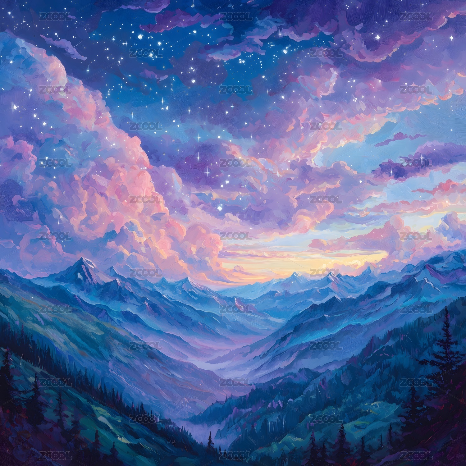 梦幻星空山脉景色