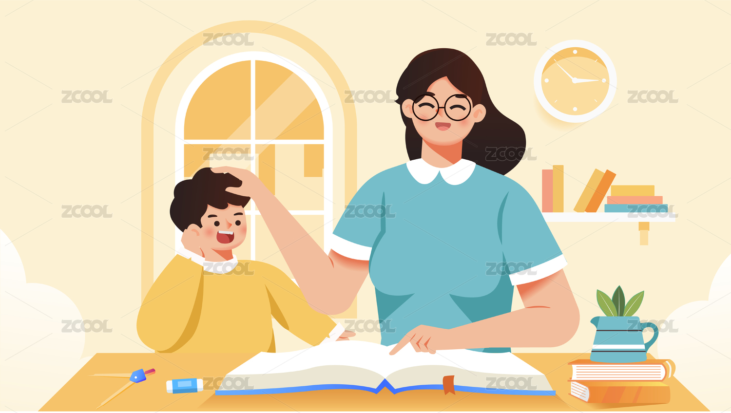 开学季亲子教育阅读世界读书日亲情陪伴插画