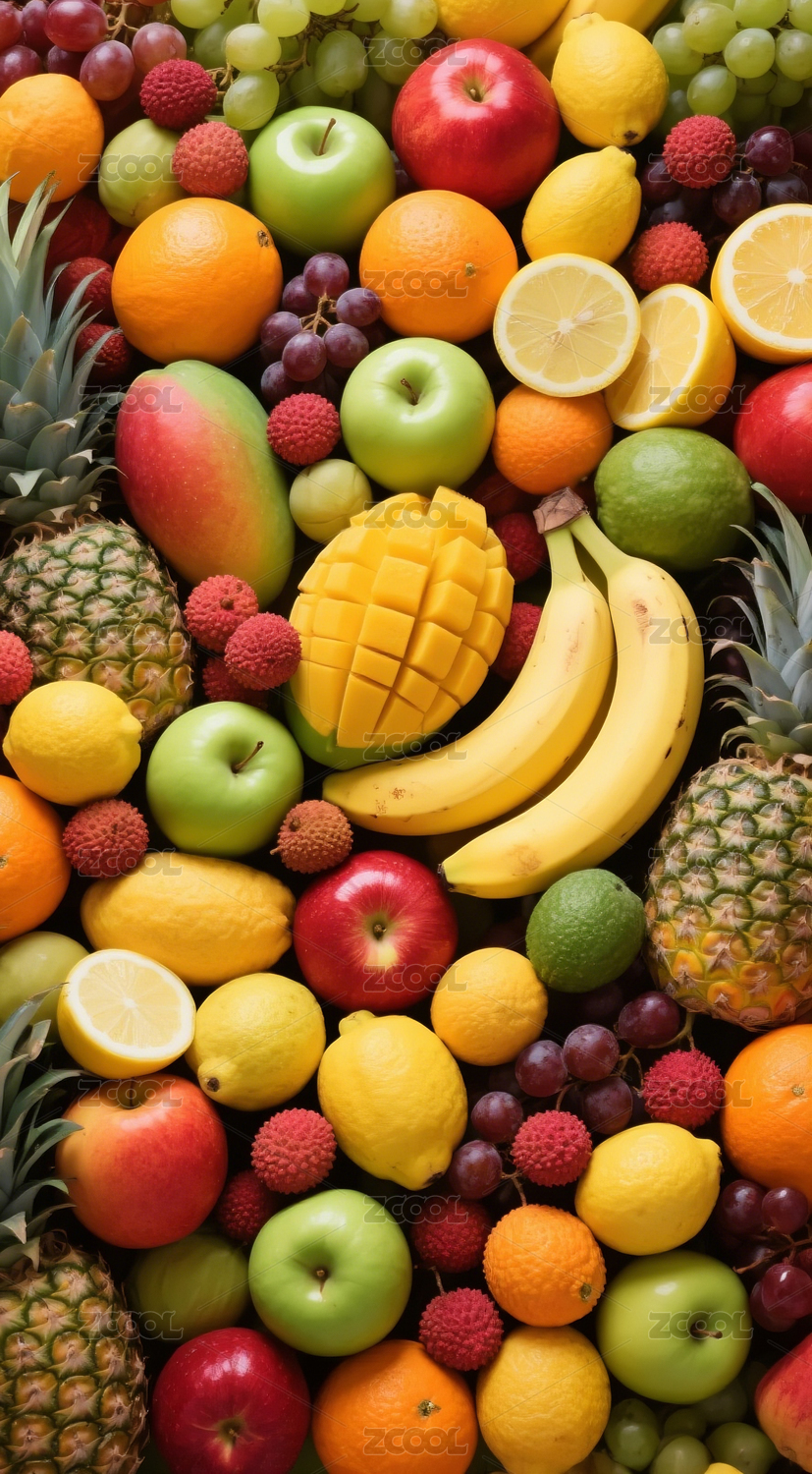铺满画面的香蕉苹果菠萝水果