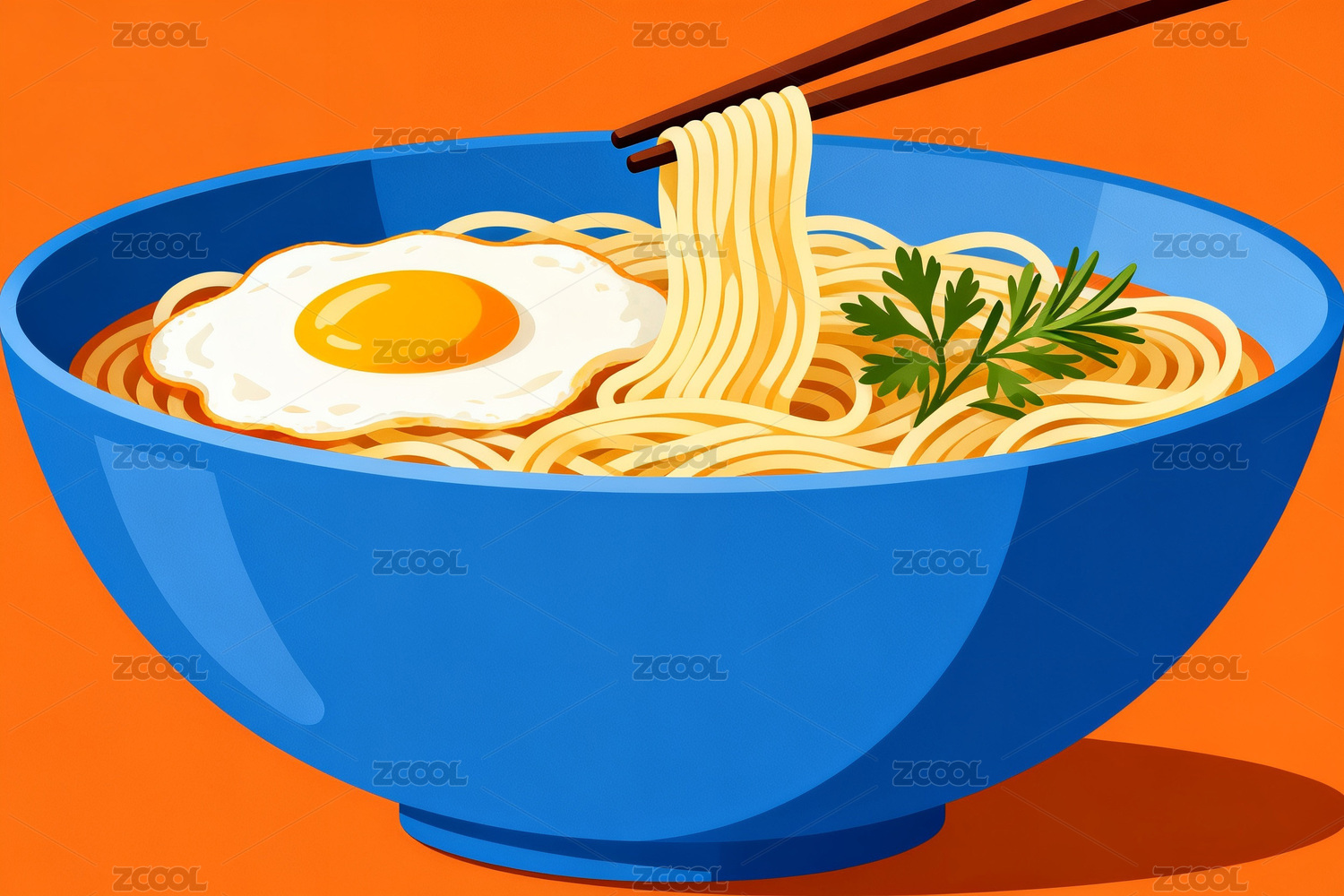 鸡蛋面,面条,美食,早餐,中餐,鸡蛋,插画,碗装,筷子,温馨