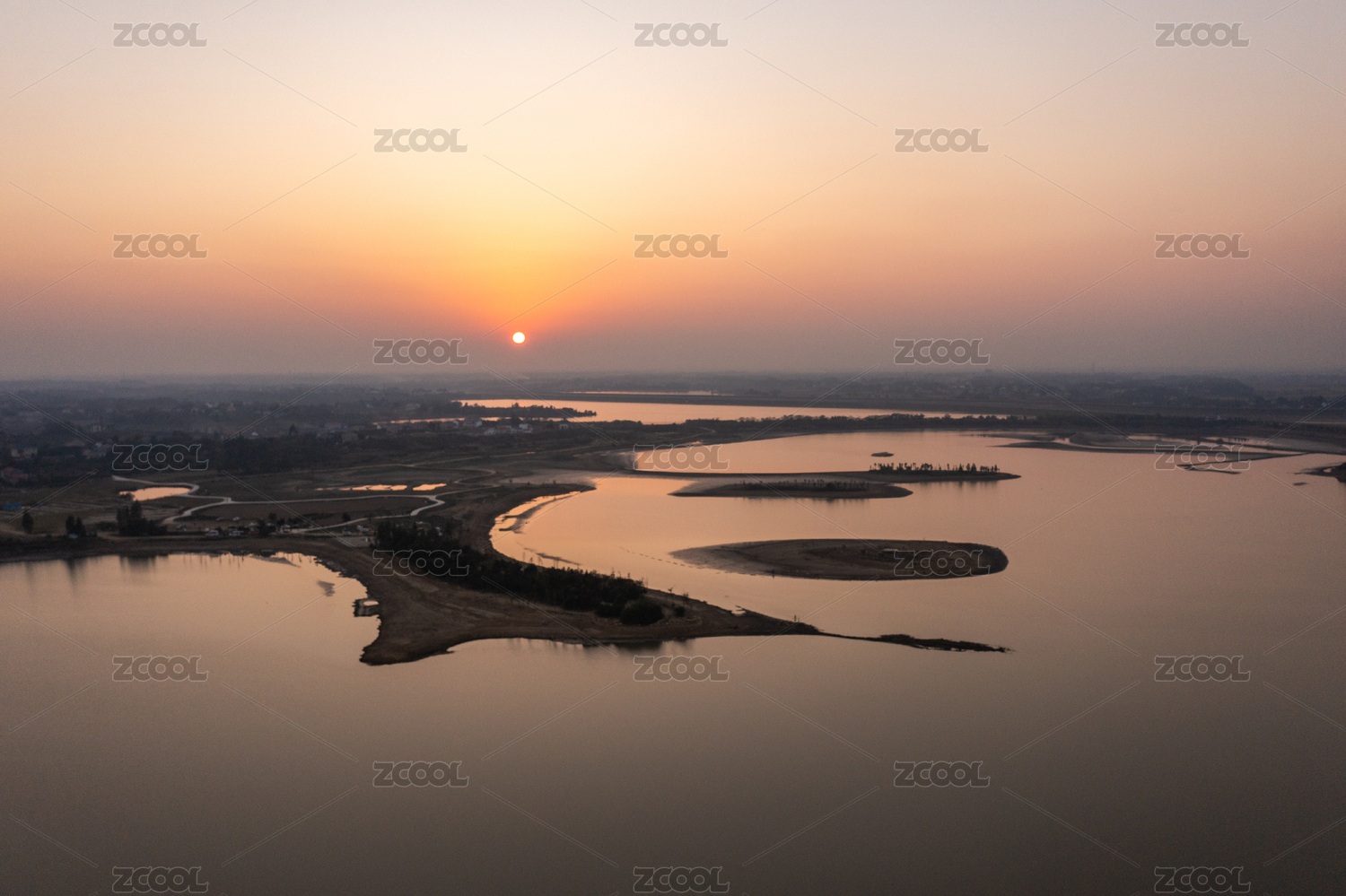 航拍湖南岳阳洞庭湖日落景观