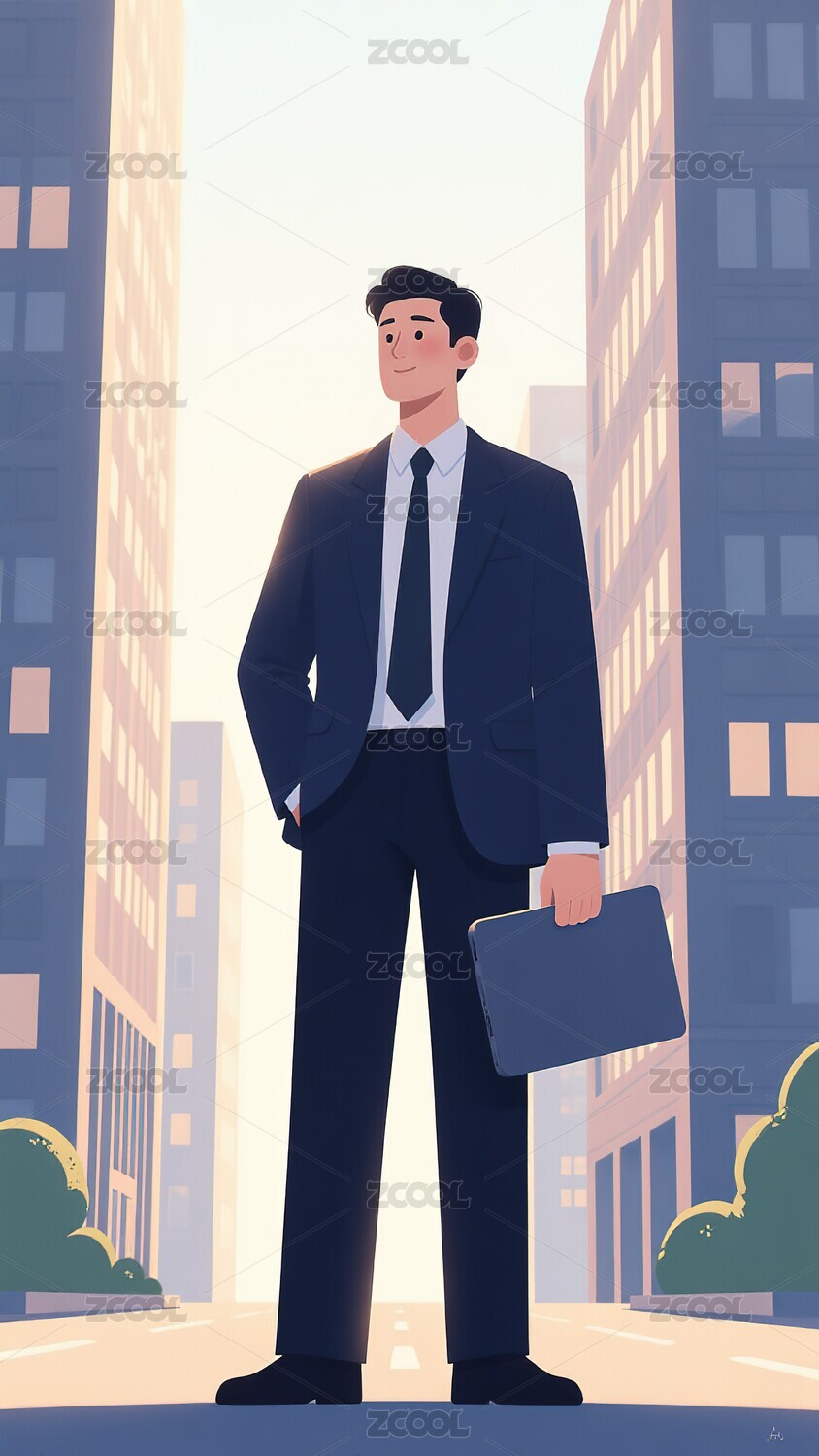 手提购物袋的男人插画 购物袋里长出可爱的植物