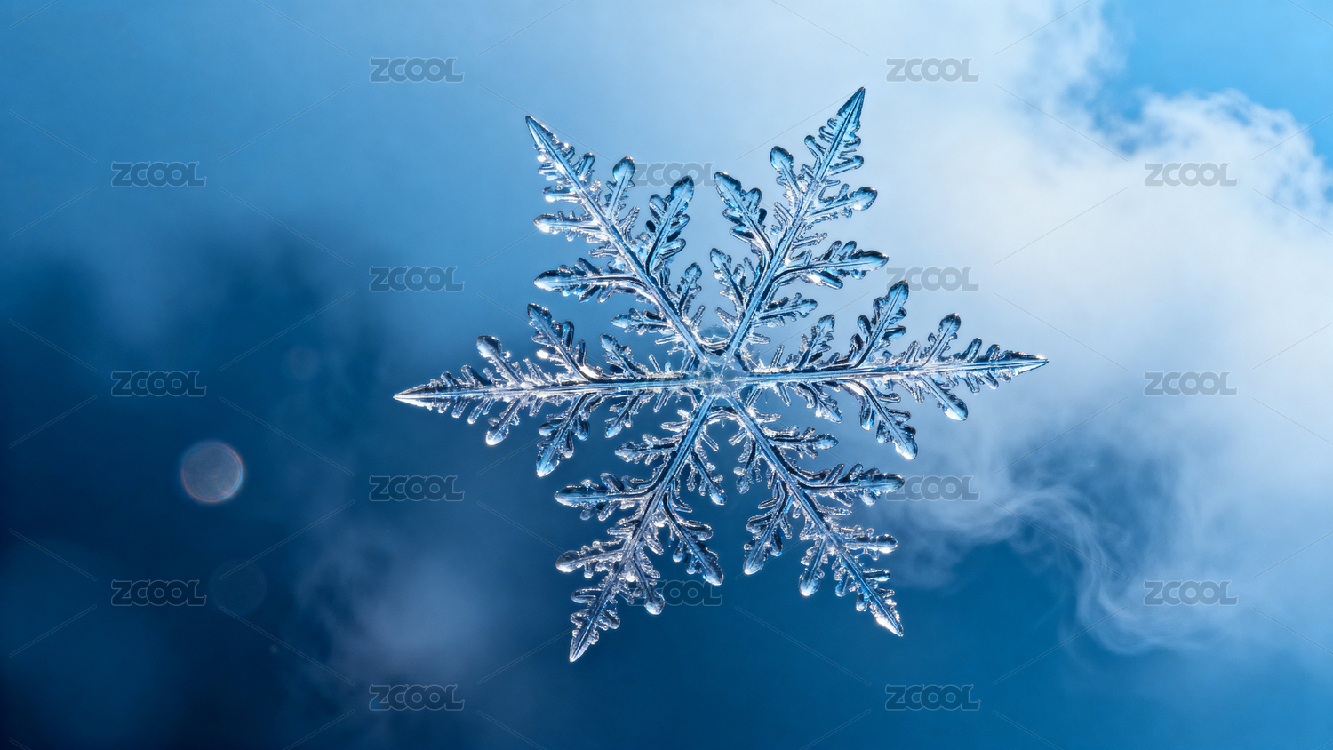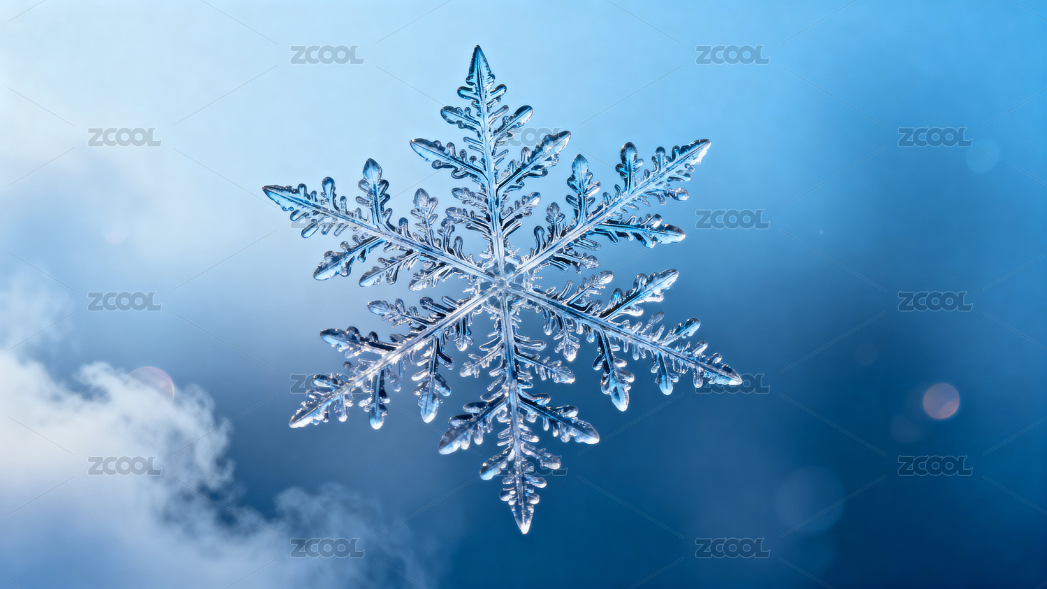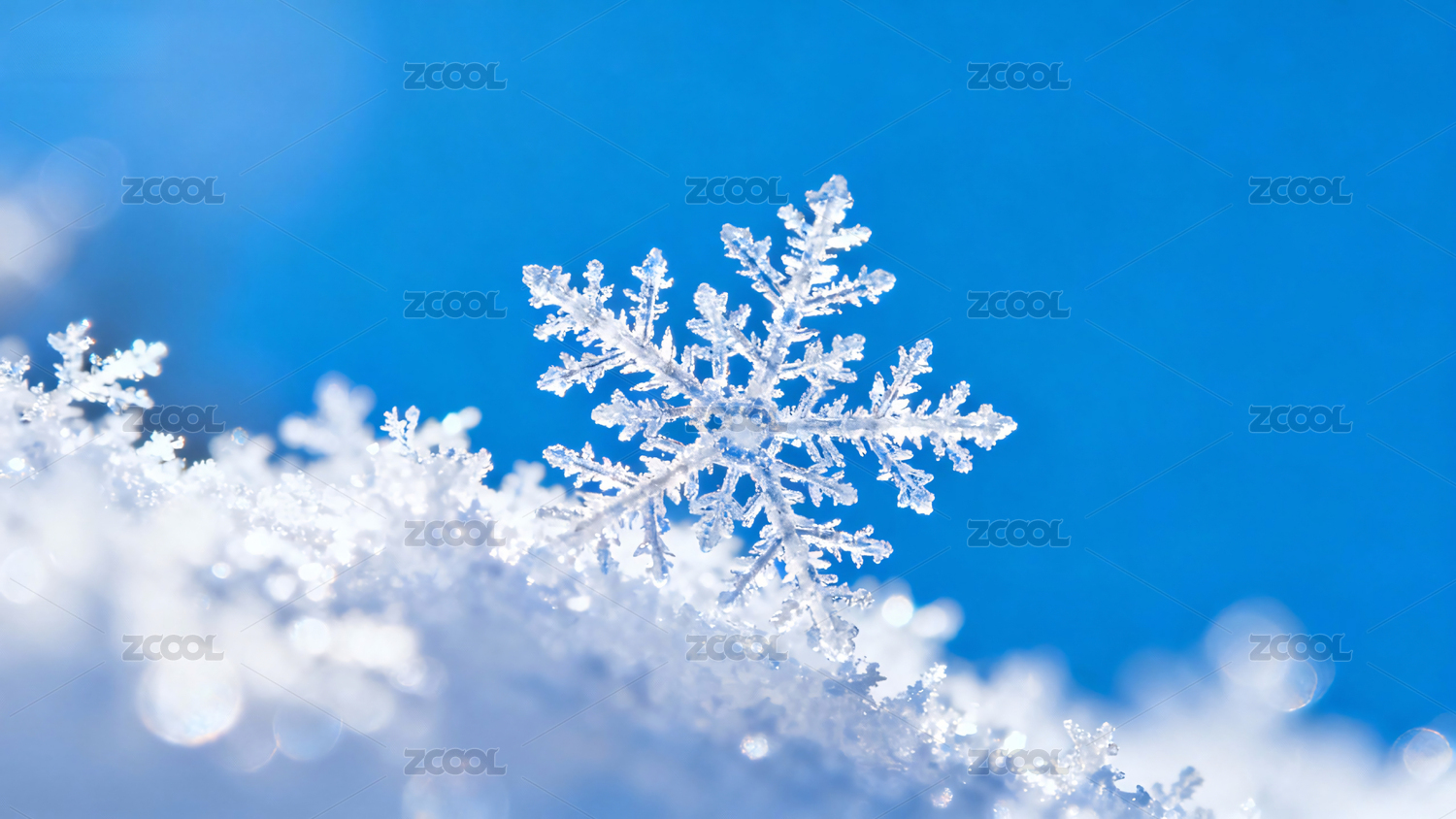 蓝天背景晶莹雪花图