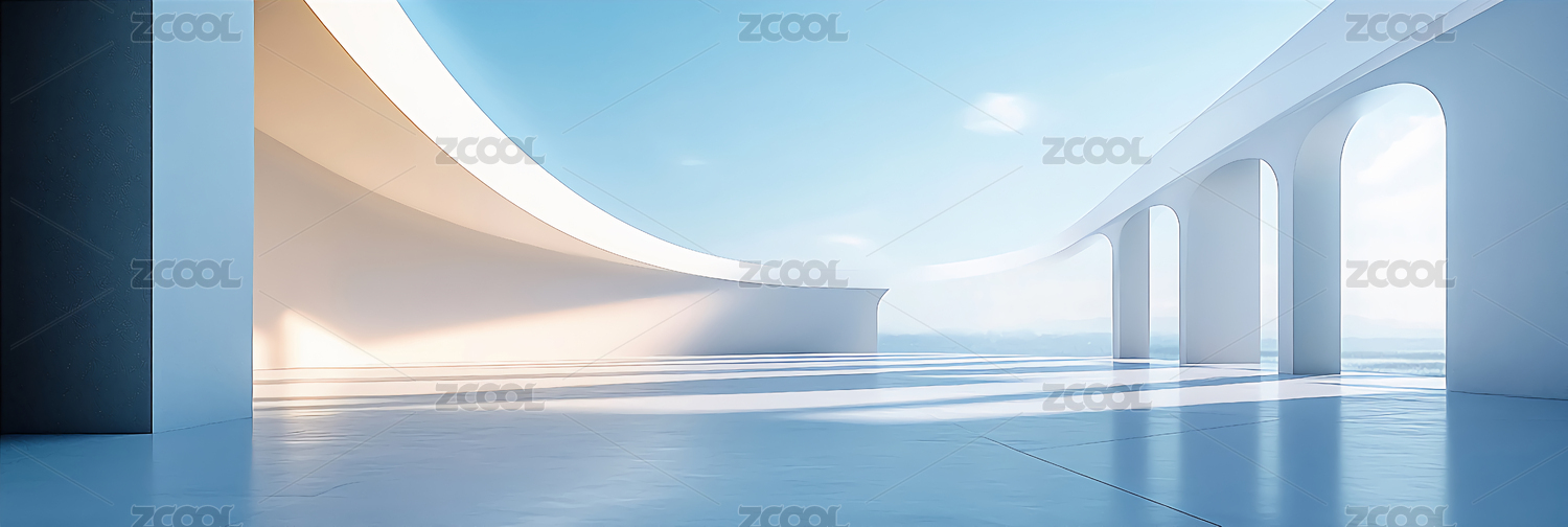 虚拟极简风格弧形室内平台空间背景