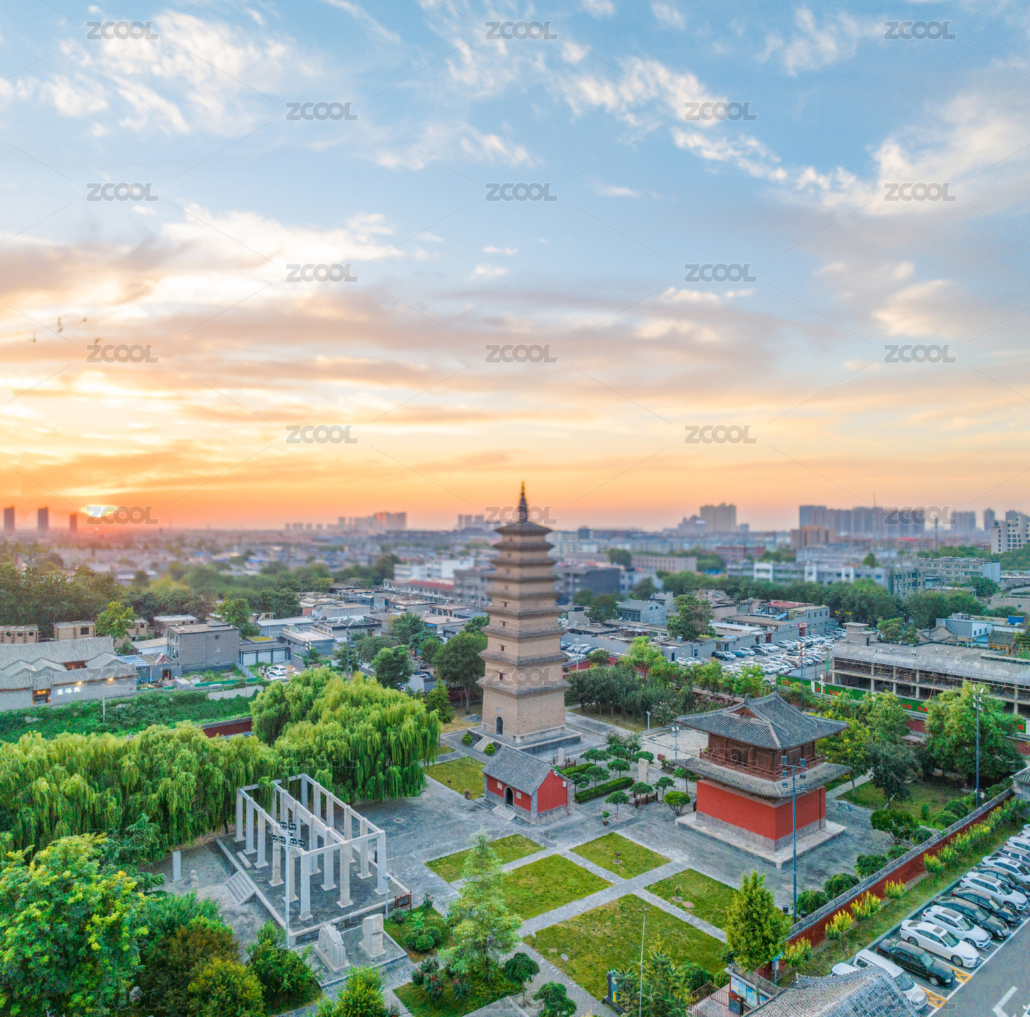 航拍河北省石家庄市正定县开元寺和须弥寺