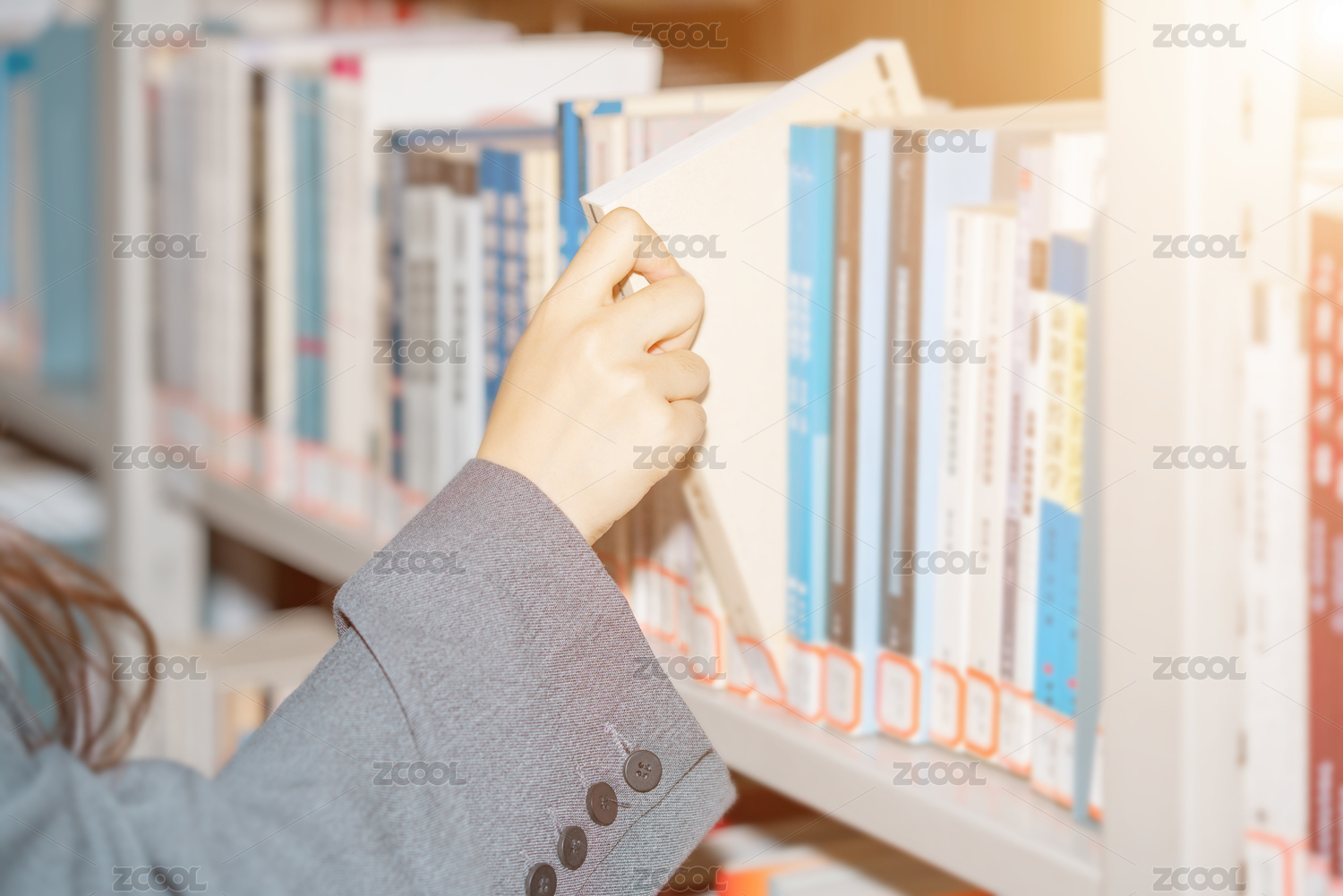 一个中国人美女图书馆拿出抽出书本课本文献借阅图书查找查询查阅资料学习知识