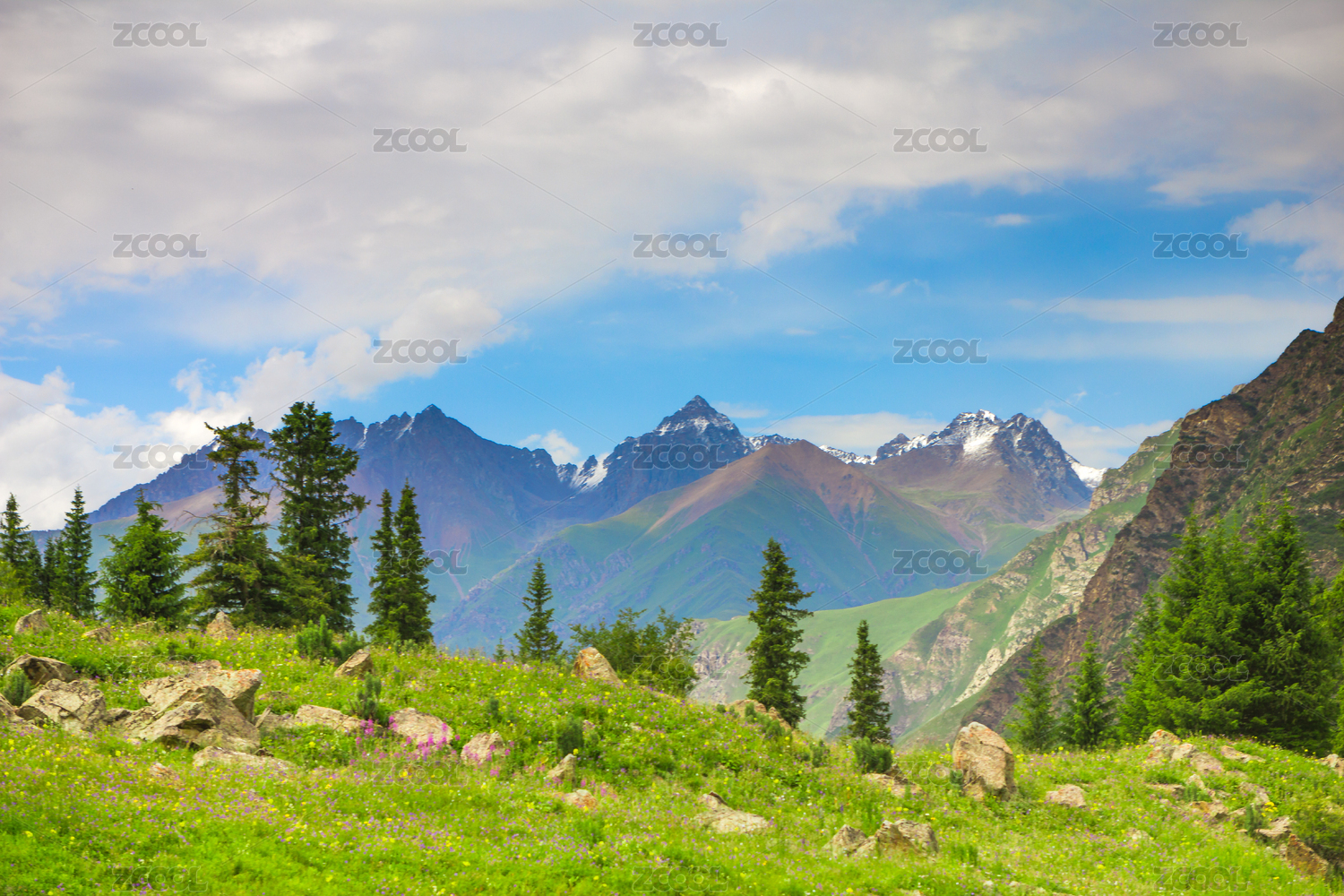 中国,云杉,亚洲,伊犁,冰川,勇敢,原始,地貌,夏塔景区,夏季