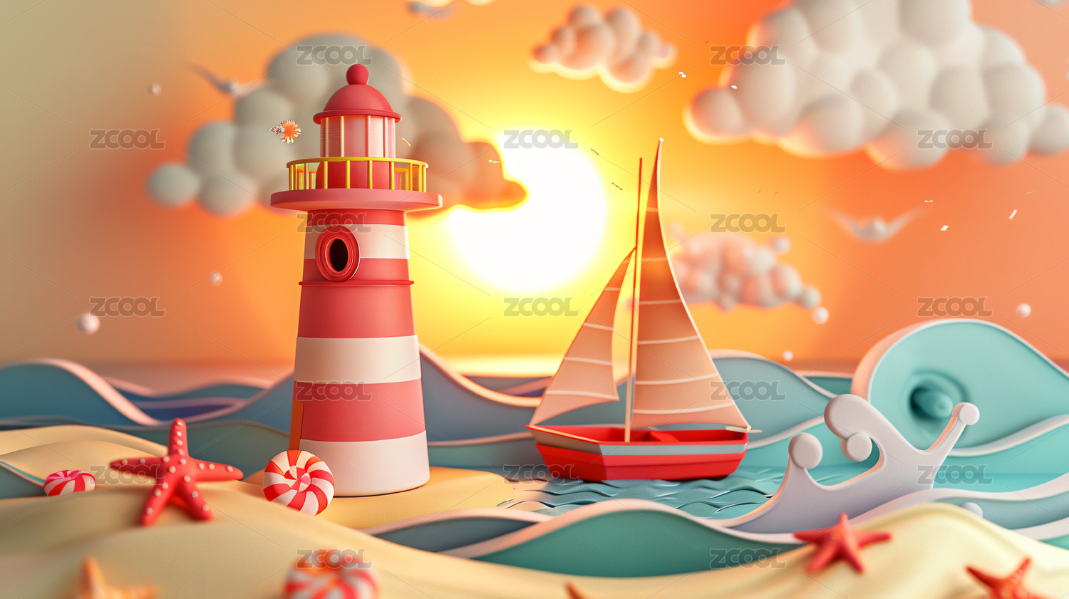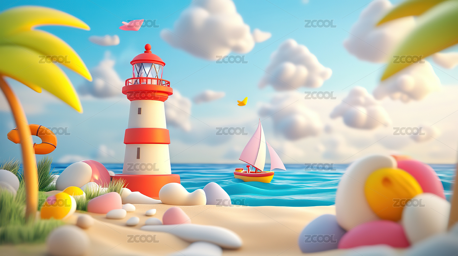 海岛灯塔3D渲染夏季热带立夏节气插图