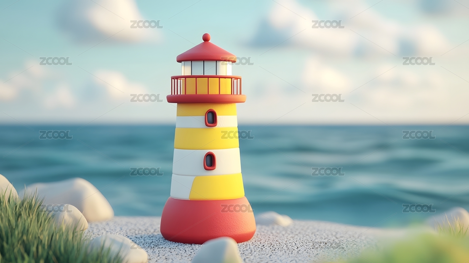 卡通风格黄色灯塔3D渲染