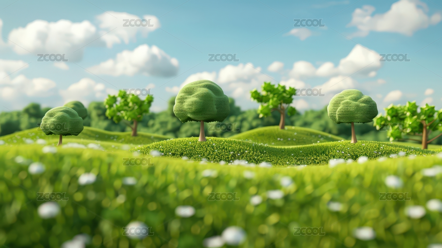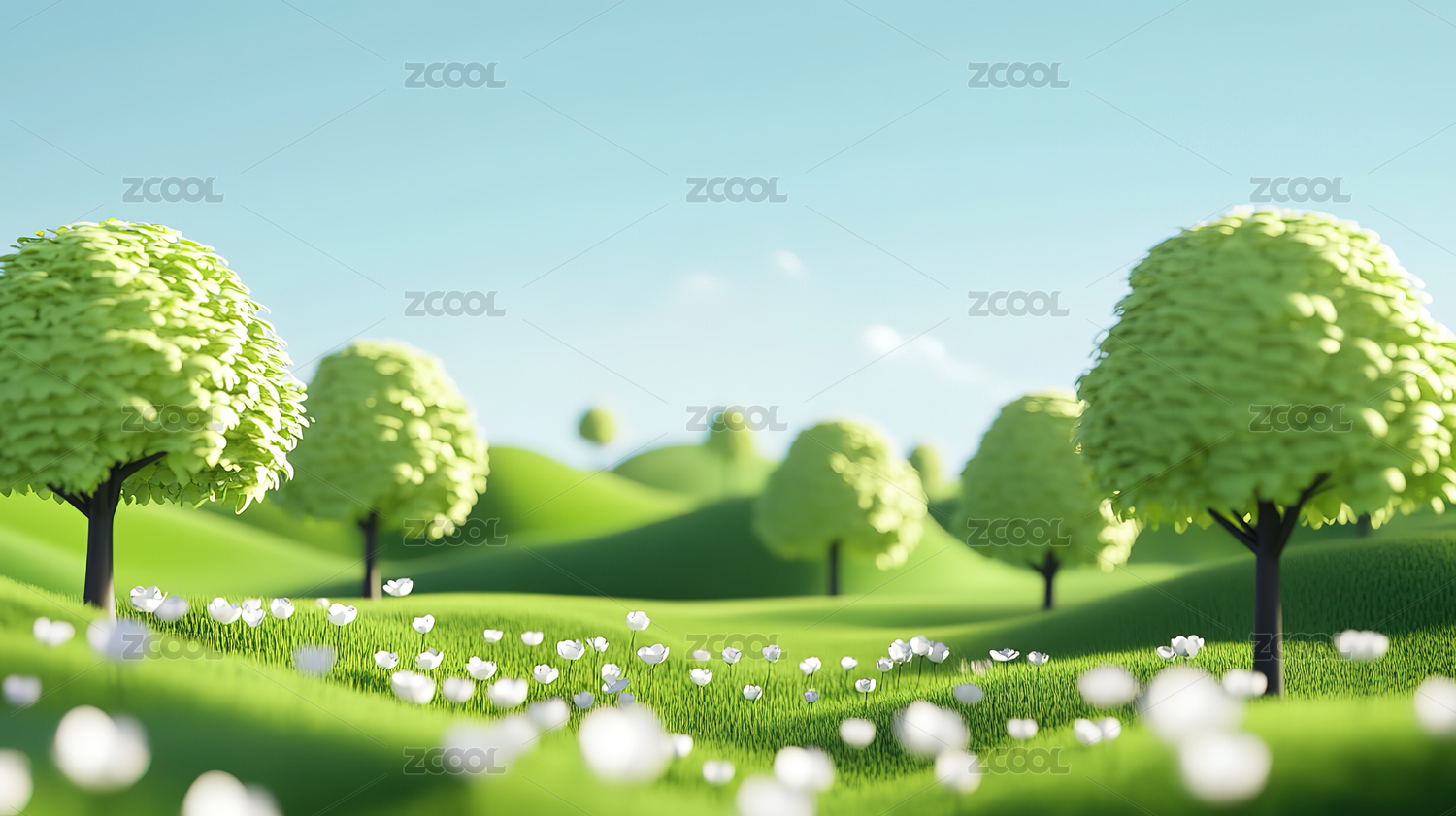 3D卡通春天植物风景