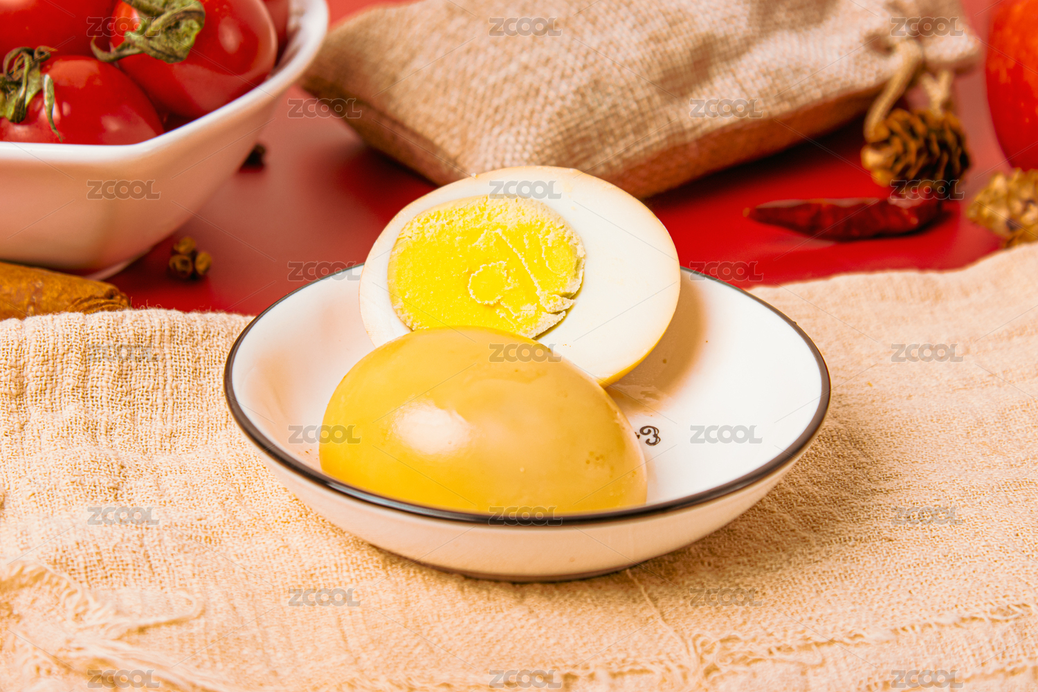 盘子里的五香盐焗鸡蛋