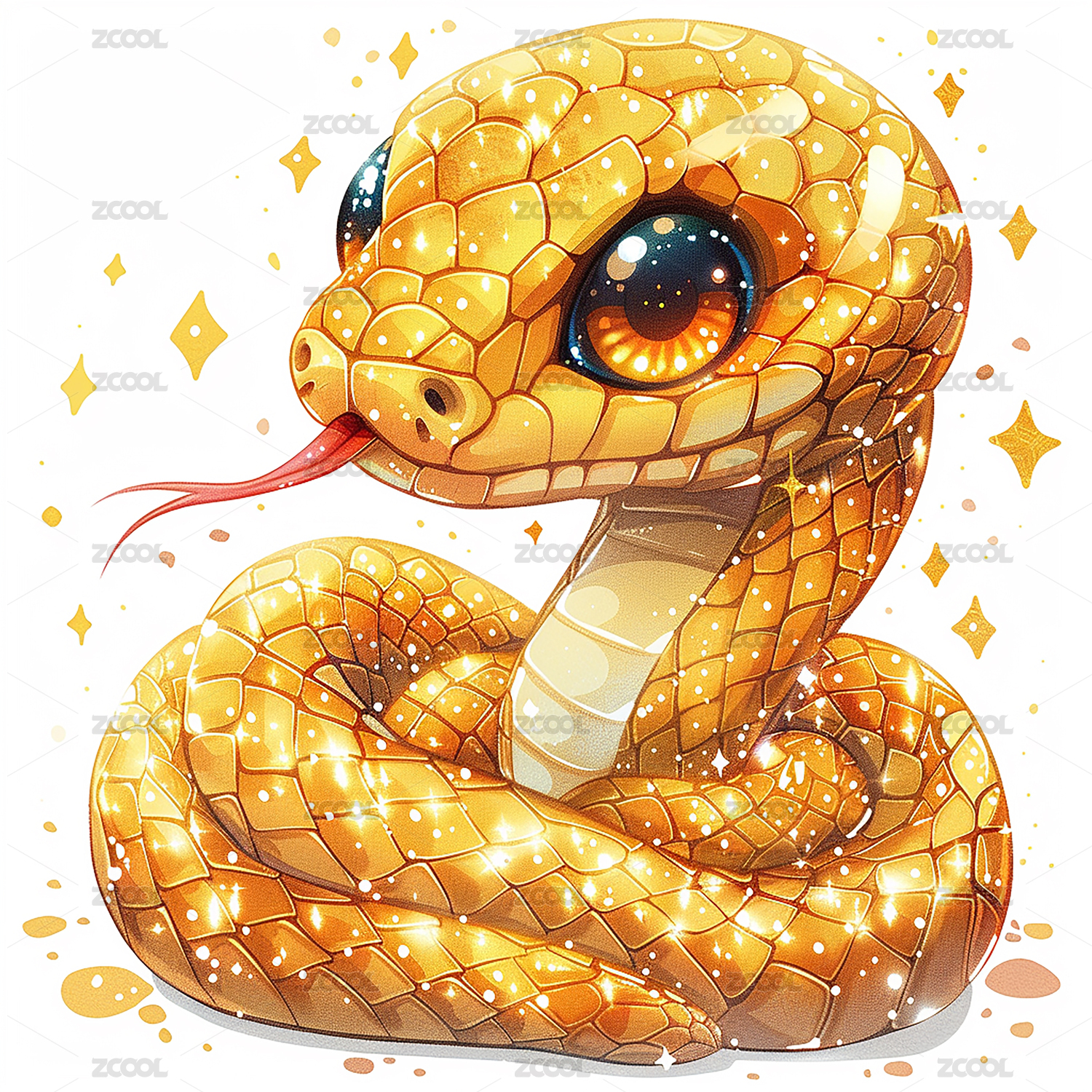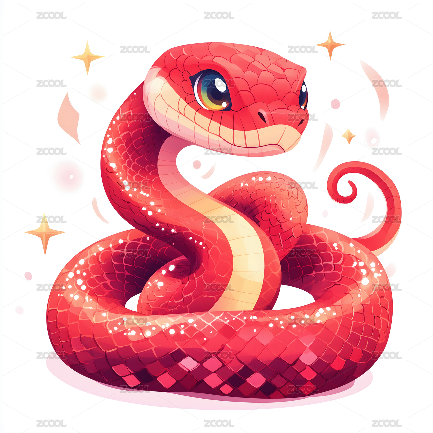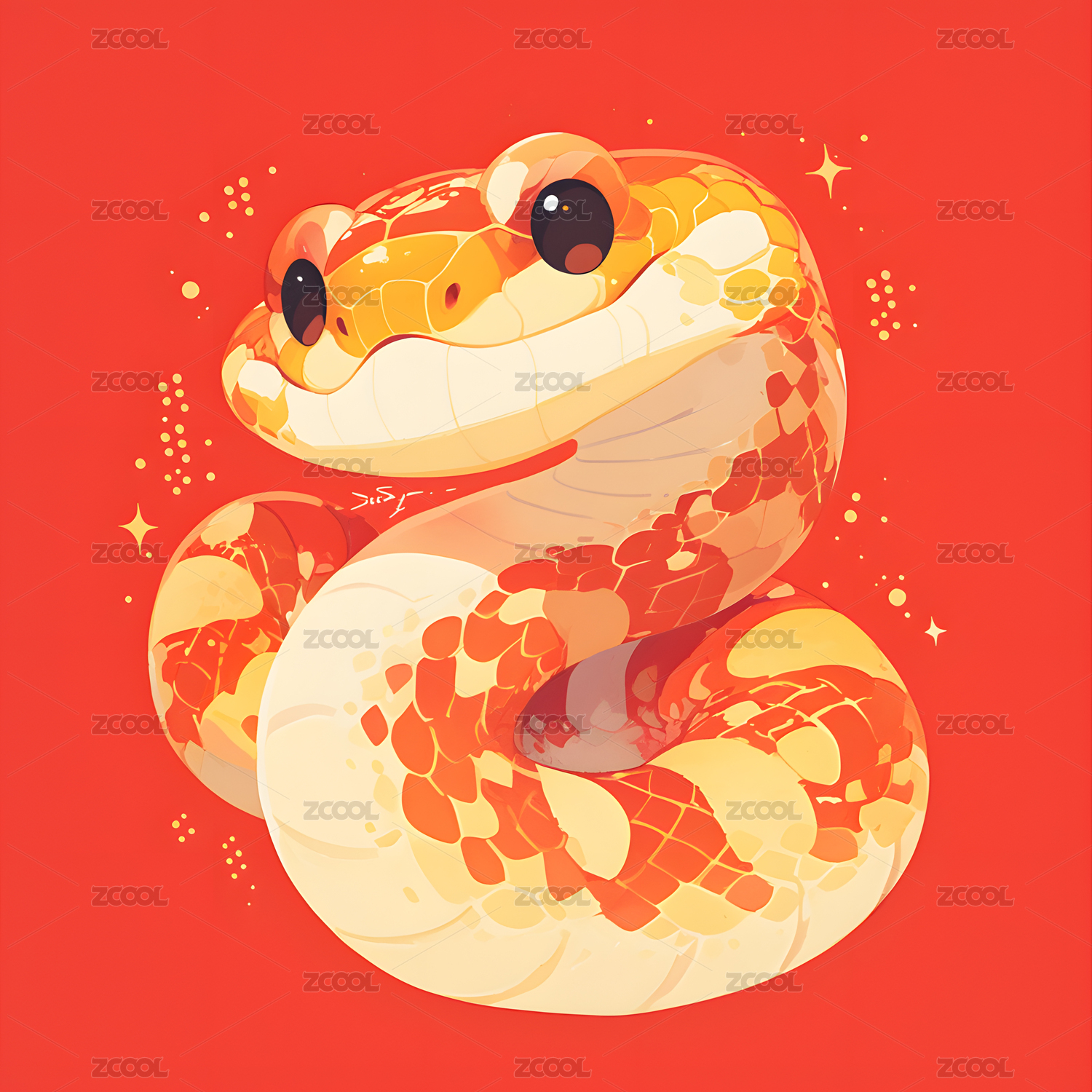 DXCZ202403,蛇,金蛇,红色背景,可爱,插图,插画,绘本,节日,过节