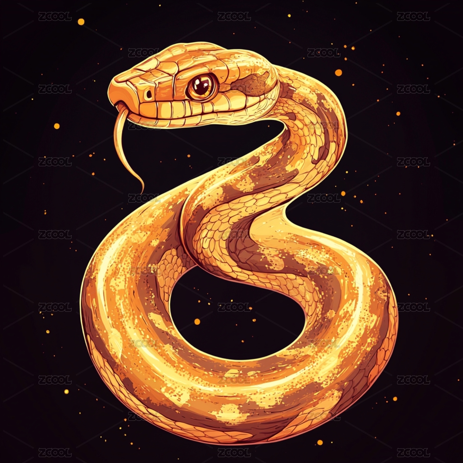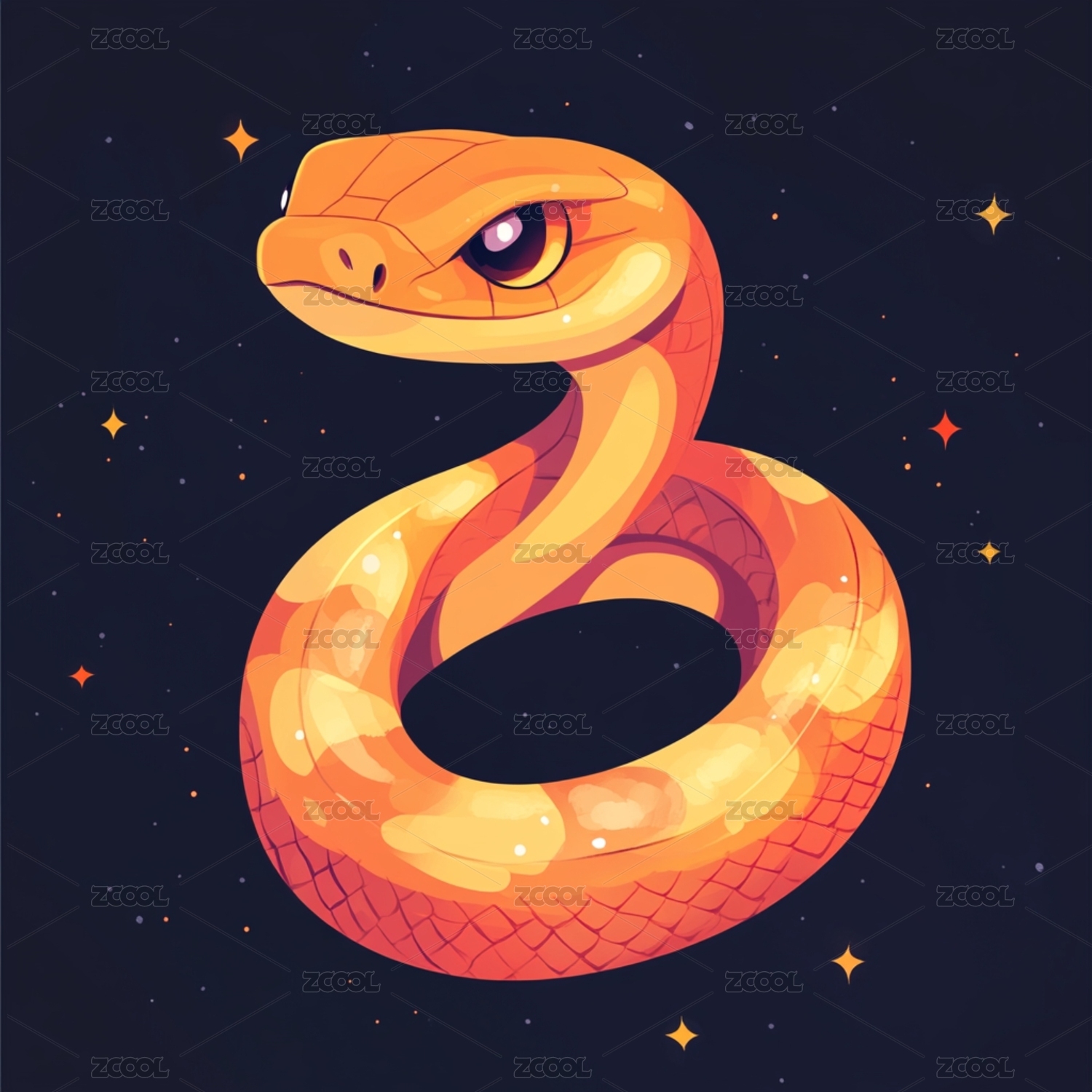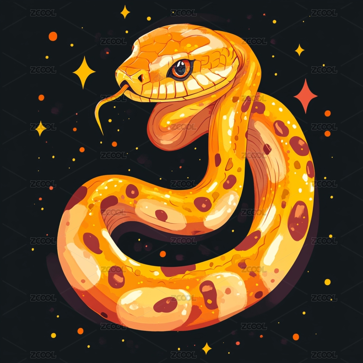 DXCZ202403,蛇,金蛇,红色背景,可爱,插图,插画,绘本,节日,过节