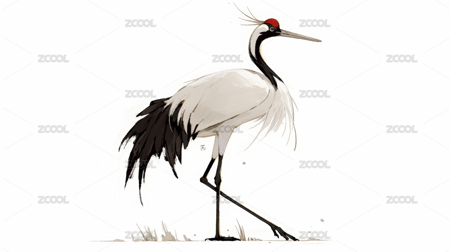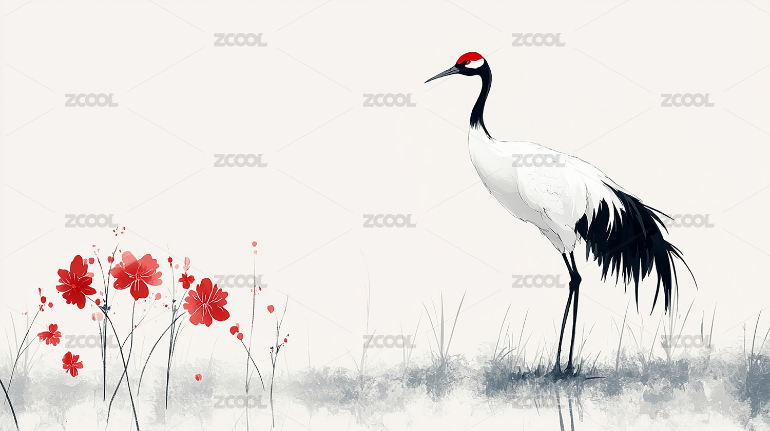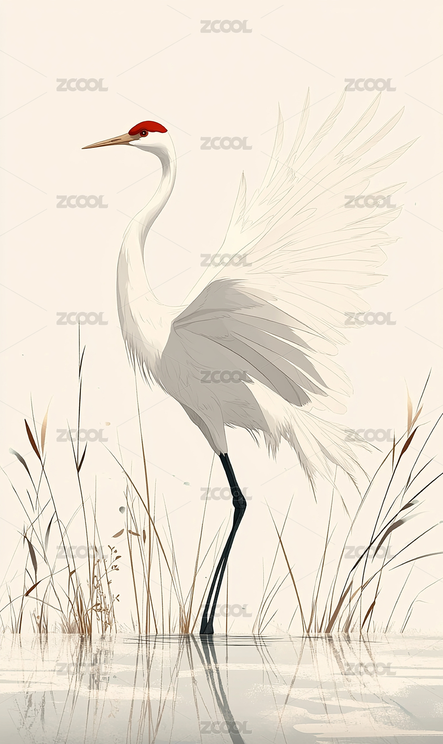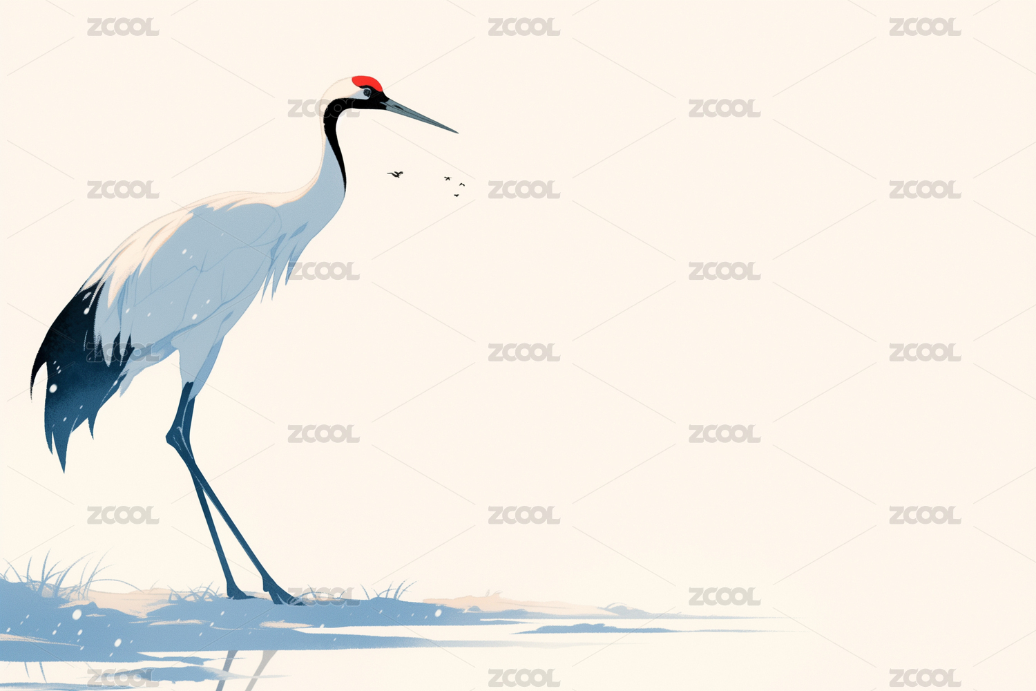 仙鹤,白鹤,丹顶鹤,插画,湖泊,国风,自然,保护,动物,鸟类