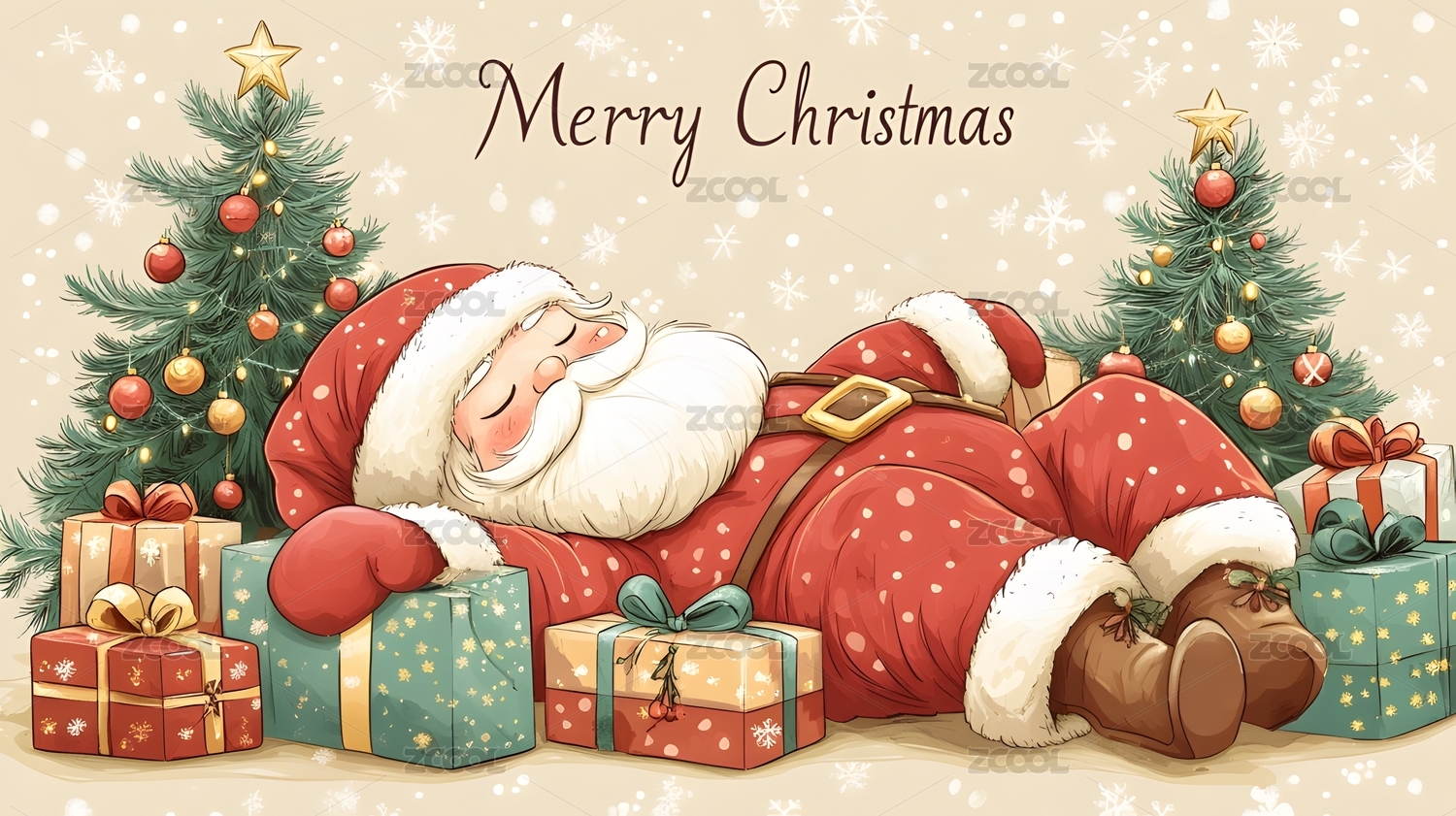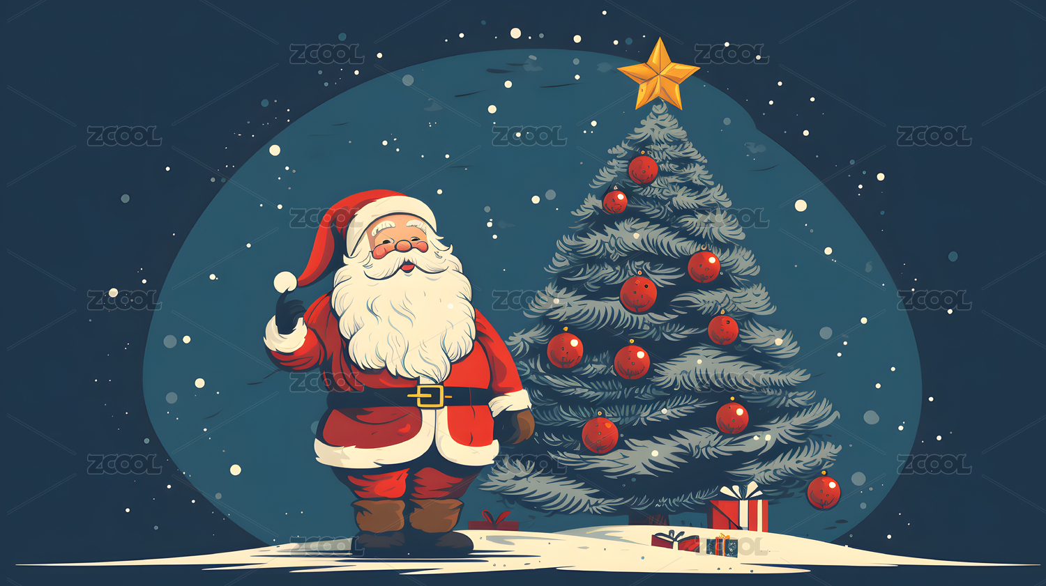 圣诞节装饰背景圣诞老人圣诞树冬季雪花插画