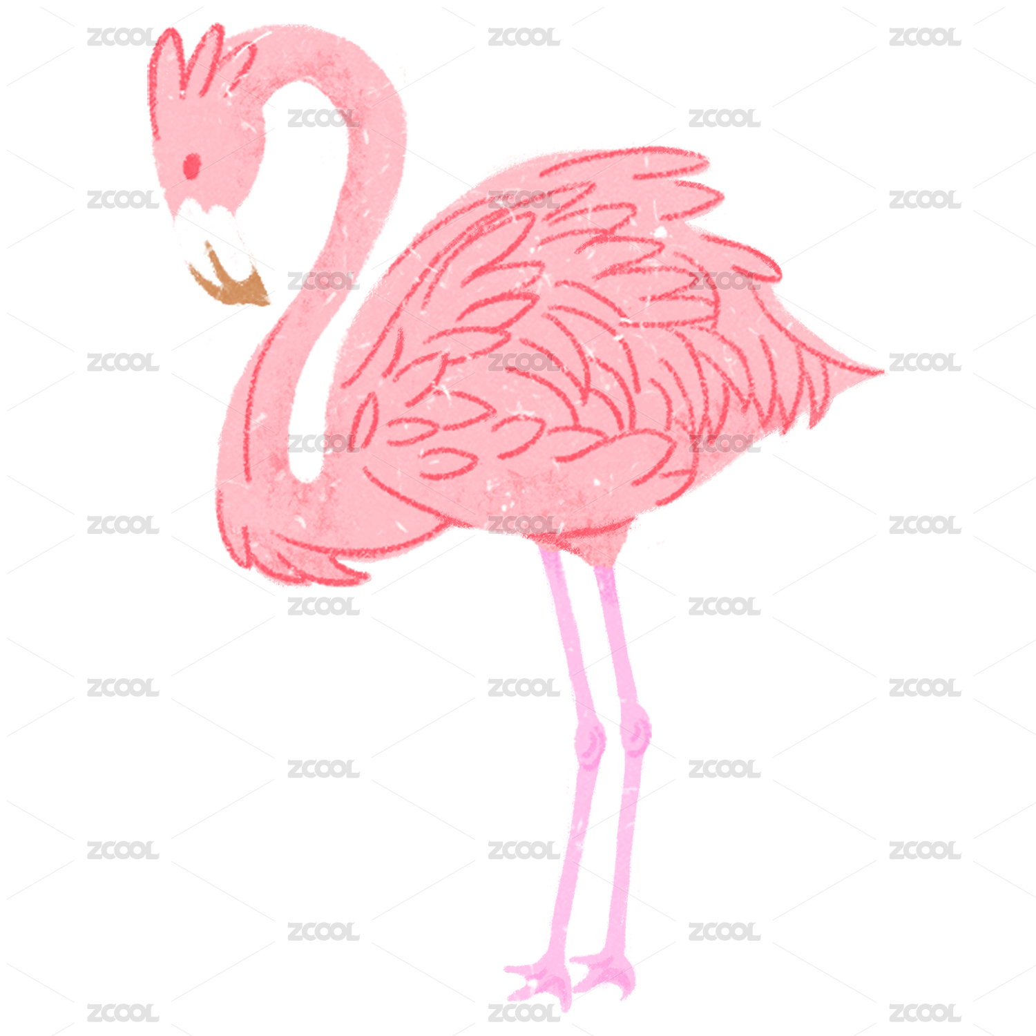 卡通,手绘,水鸟,鸟儿,长腿鸟,红色鸟儿,火烈鸟,水禽,火鸟,插画