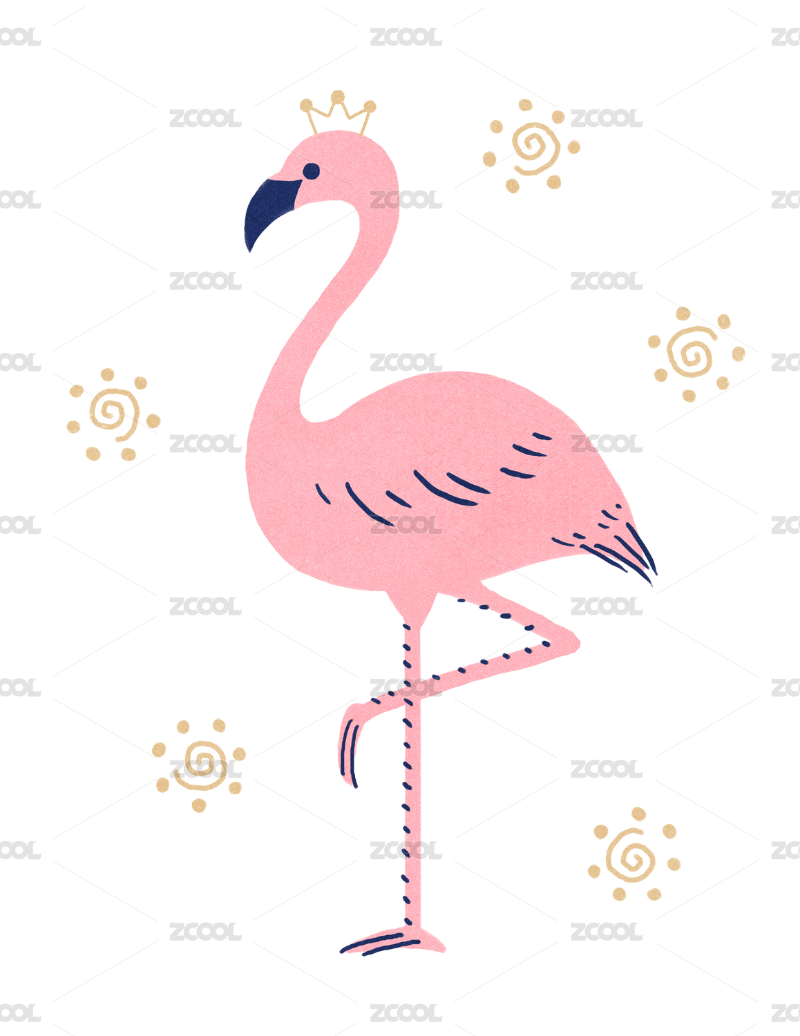 森林野生动物火烈鸟素材肌理森系装饰插画