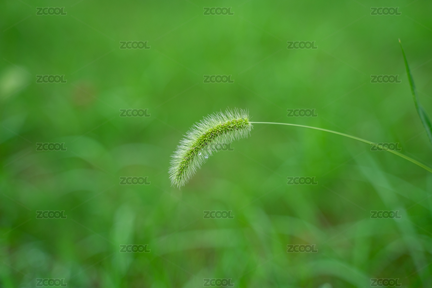 户外雨后绿色背景上的狗尾巴草微距特写