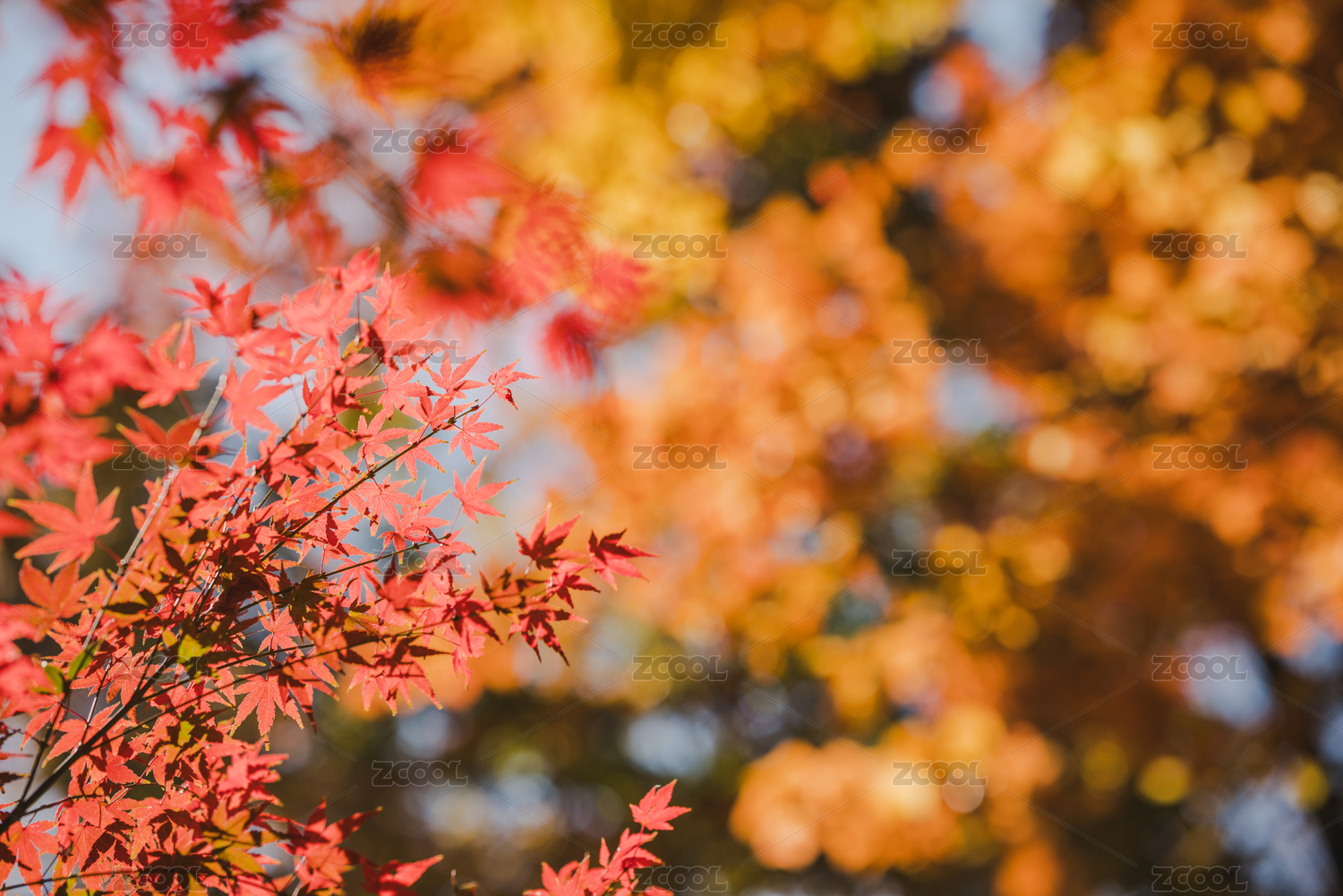 秋季逆光被阳光照亮的红色枫叶美景,中国江苏省南京市栖霞山栖霞寺风景名胜