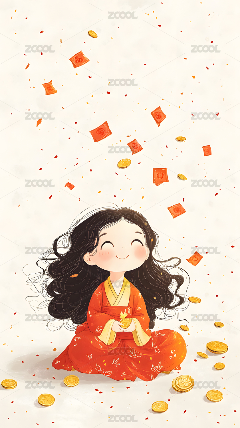 端午,香囊,唐代,古装,侍女,小人,女童,插画