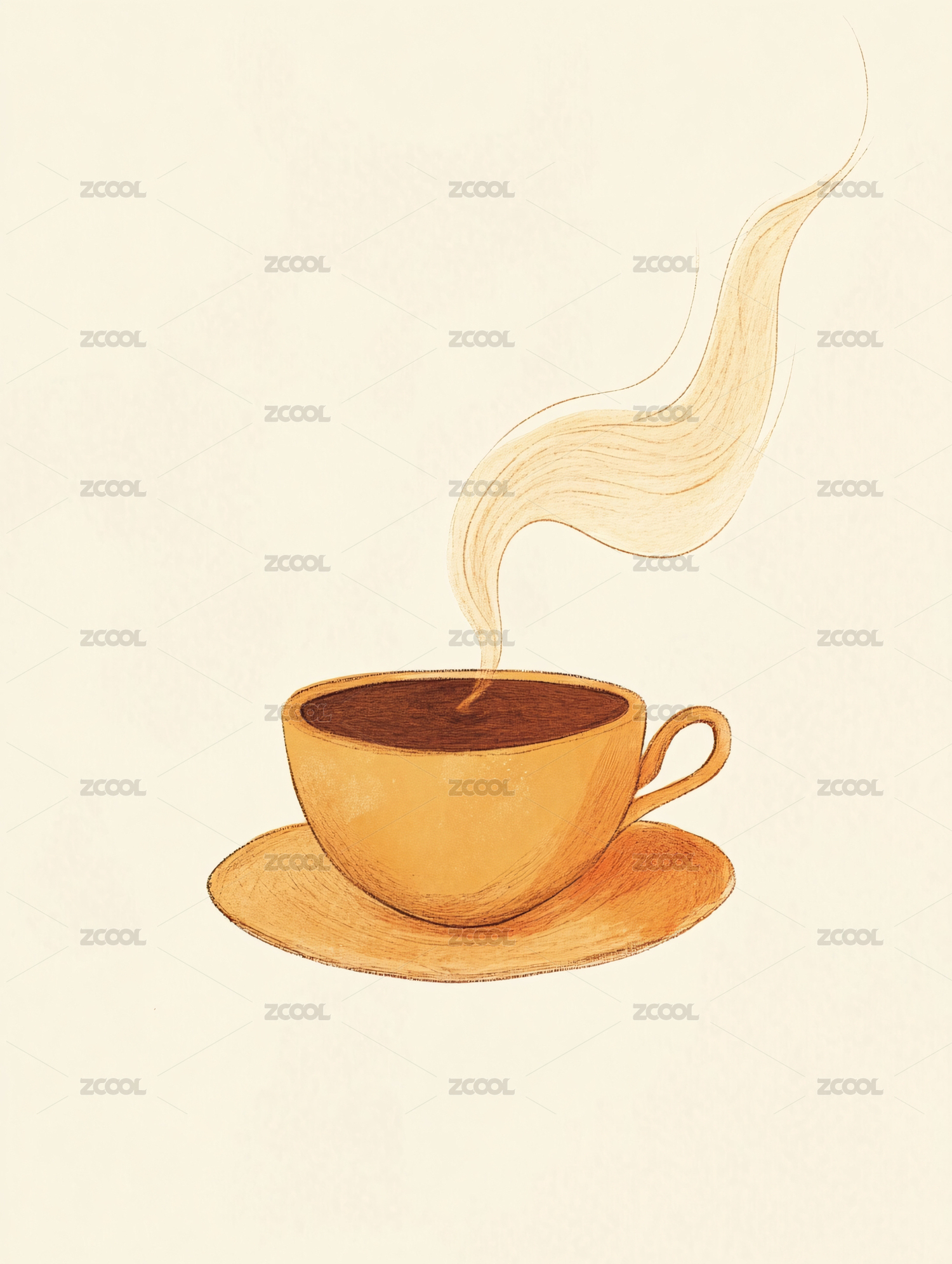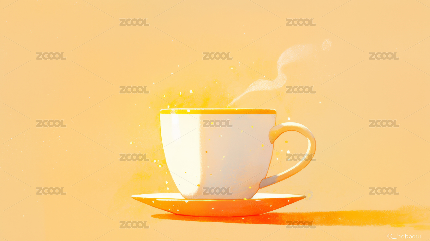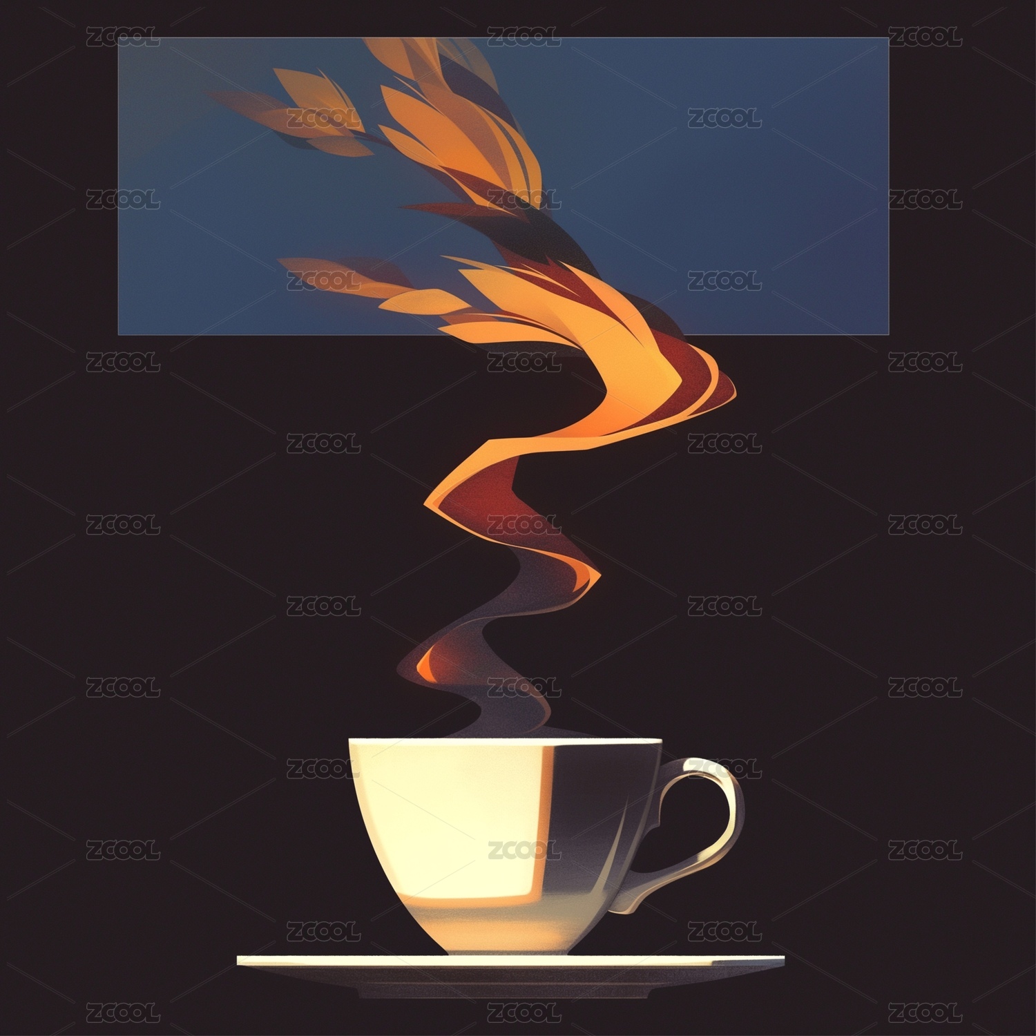 黑底桌面冒热气的一杯茶热饮3D立体插画