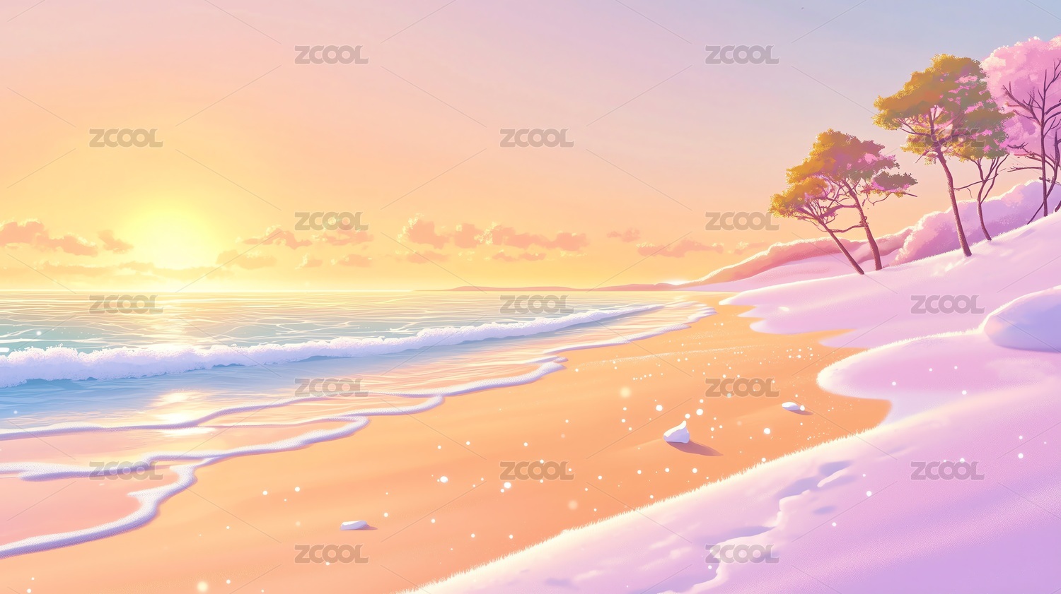 海边自然风光插画