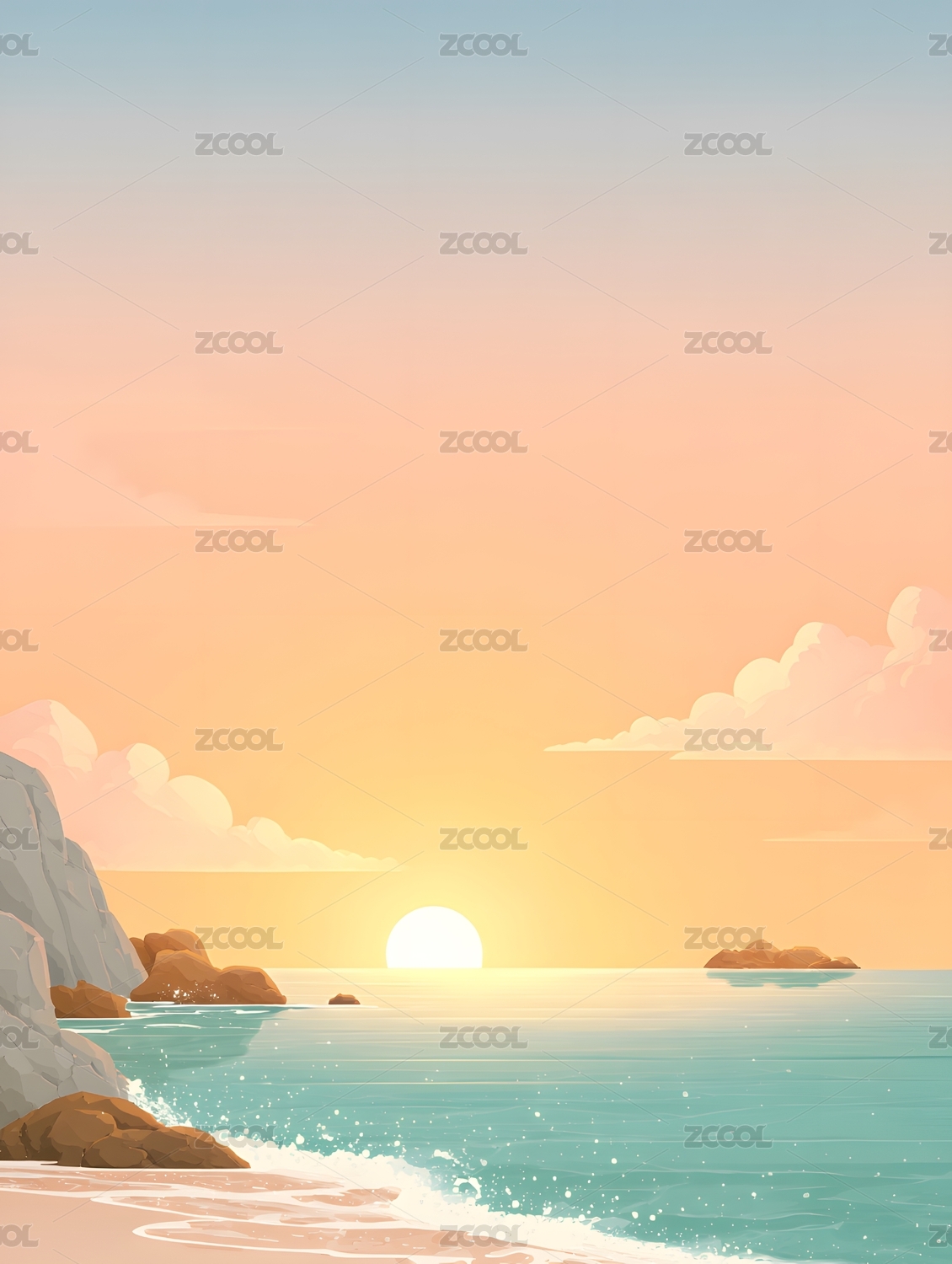 海边日出插画风景