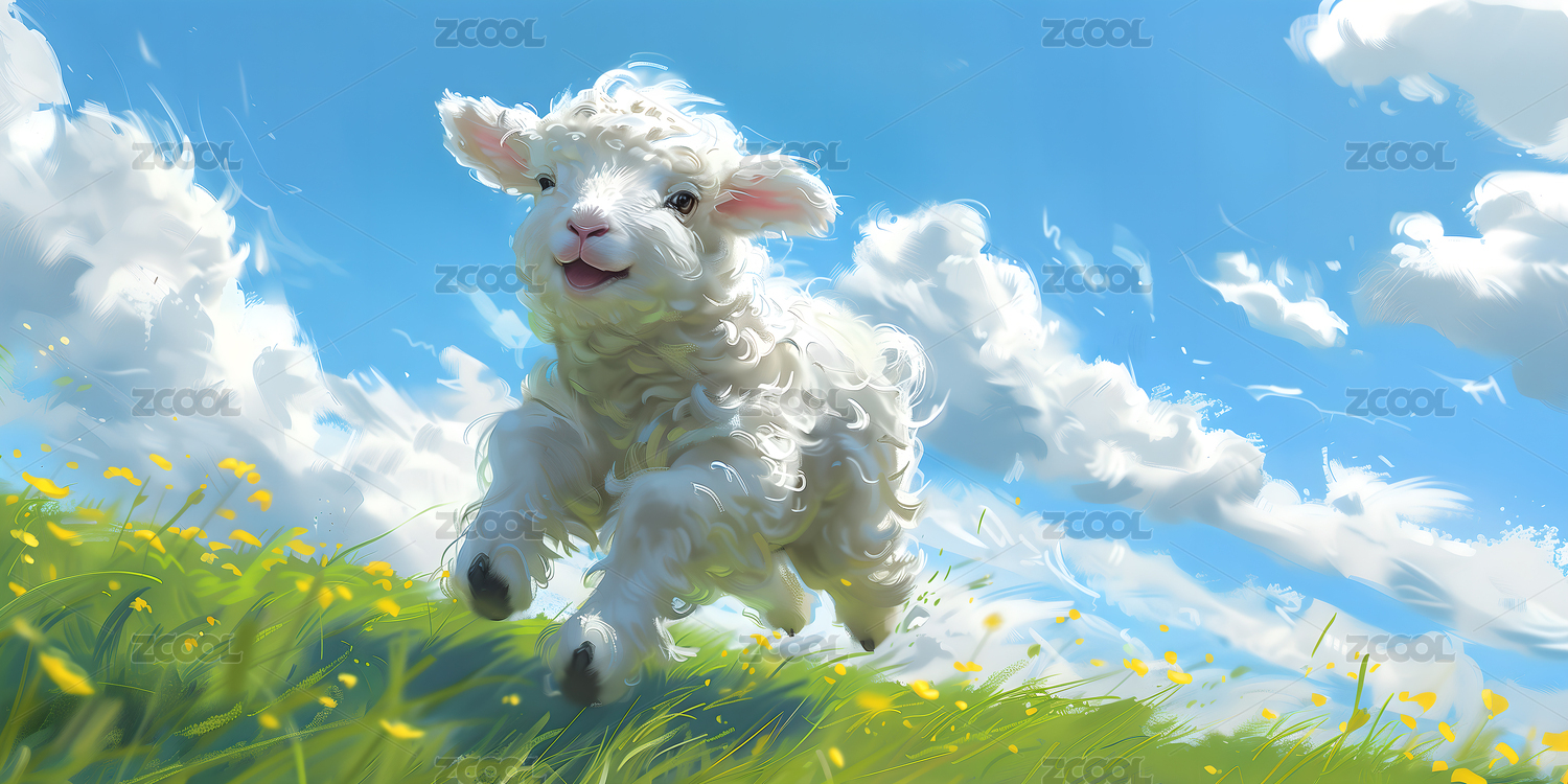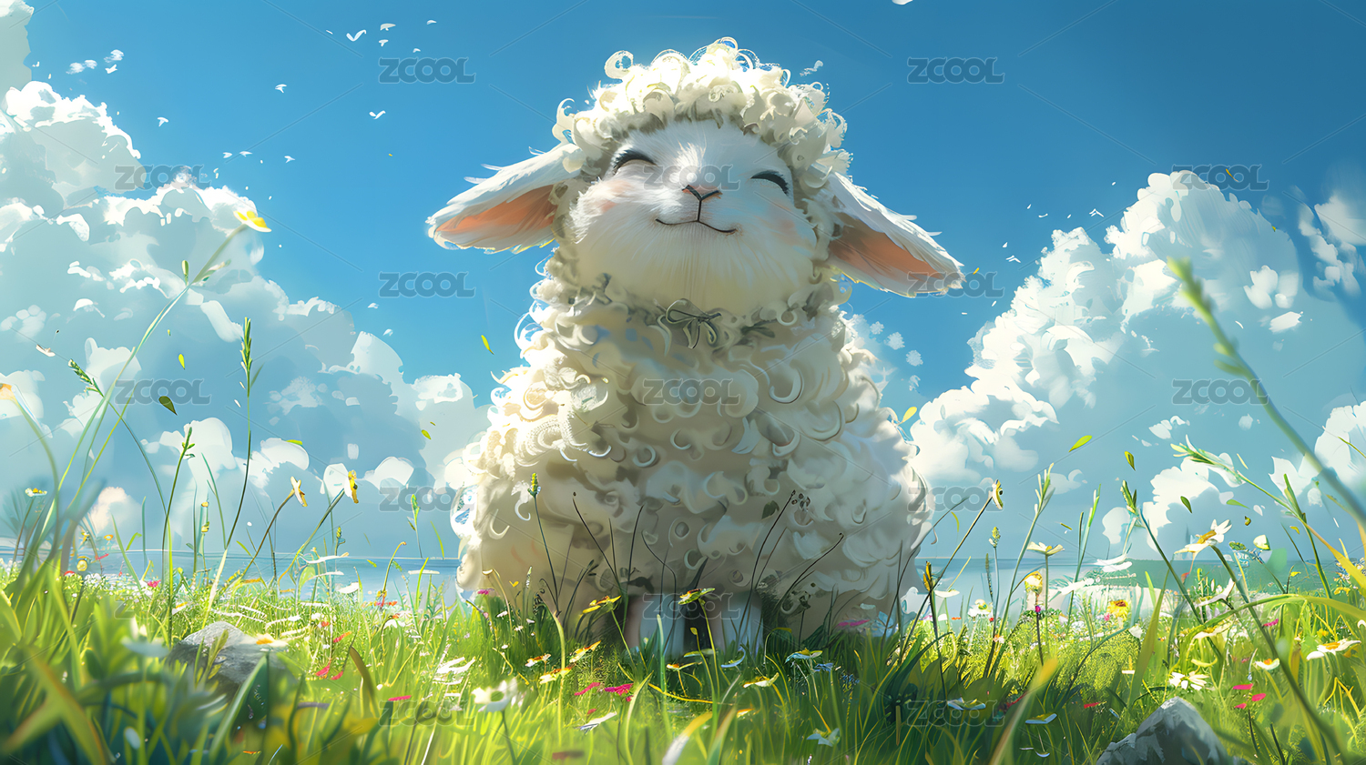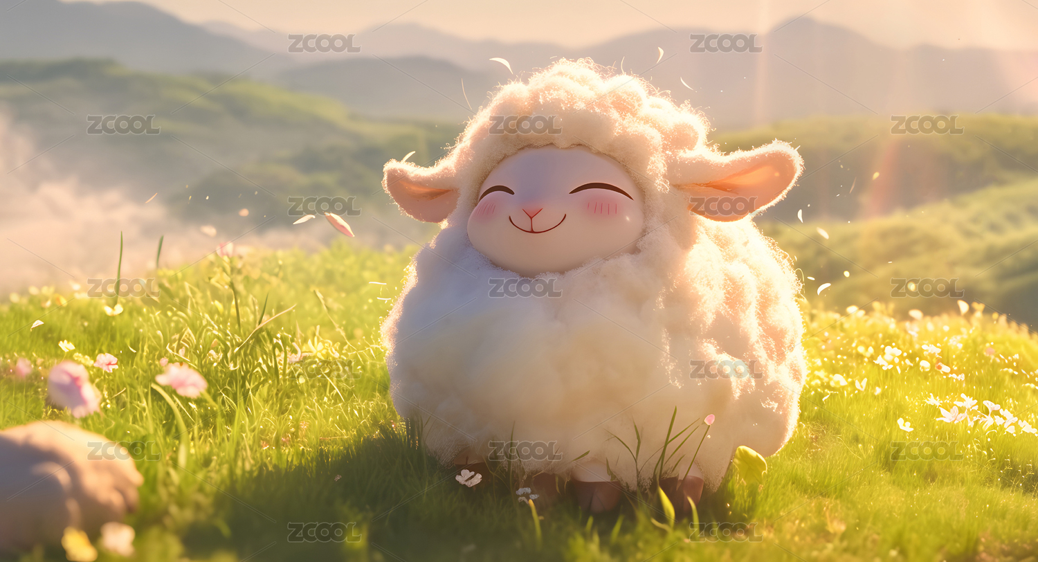 动物,写实,绘画,唯美,可爱,温馨,快乐,插画,AIGC202401,羊