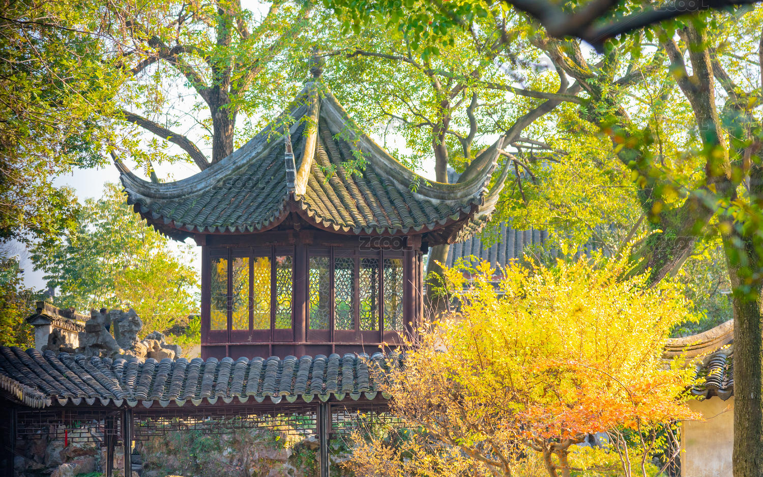 苏州拙政园的连廊和走廊,中式古典建筑元素