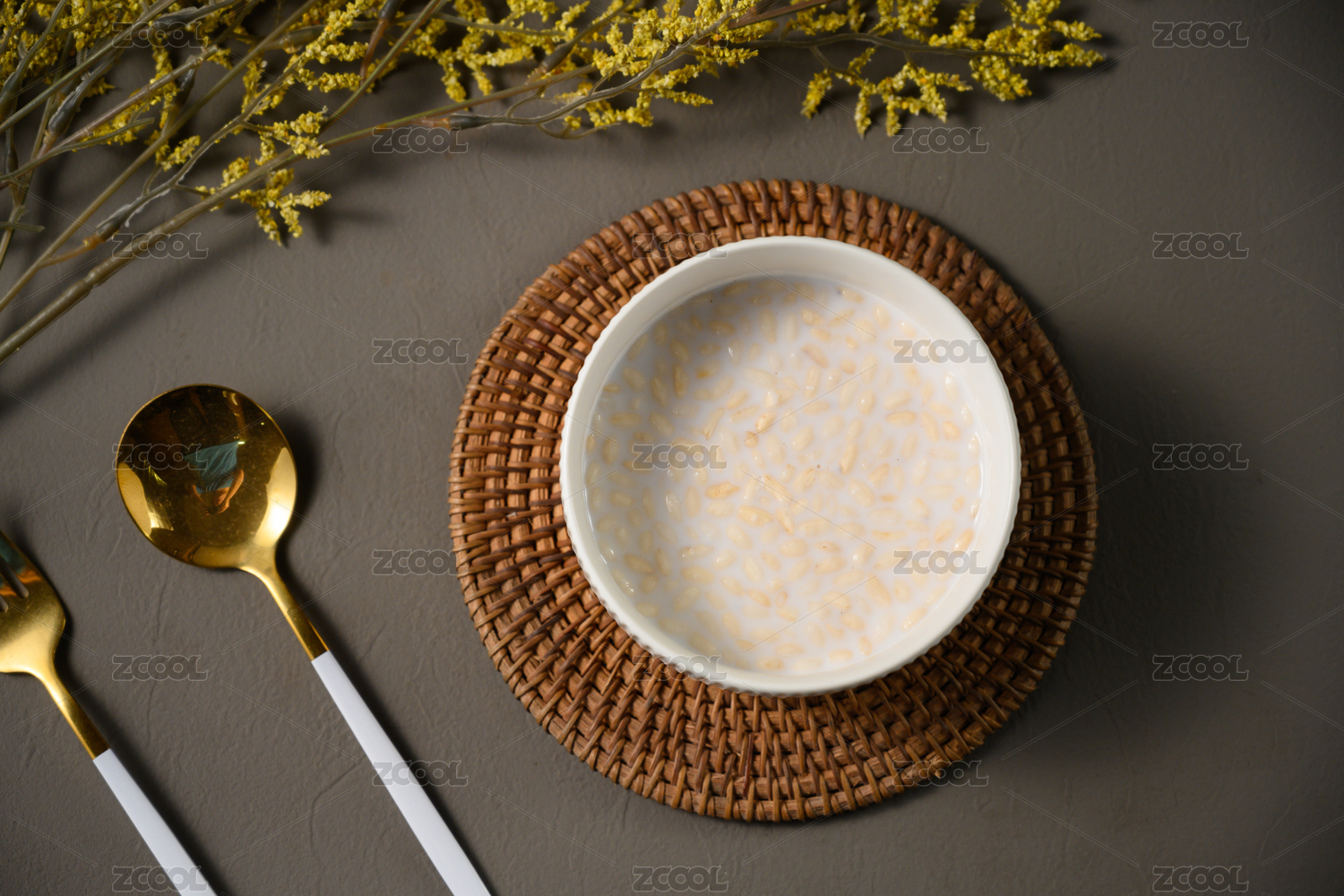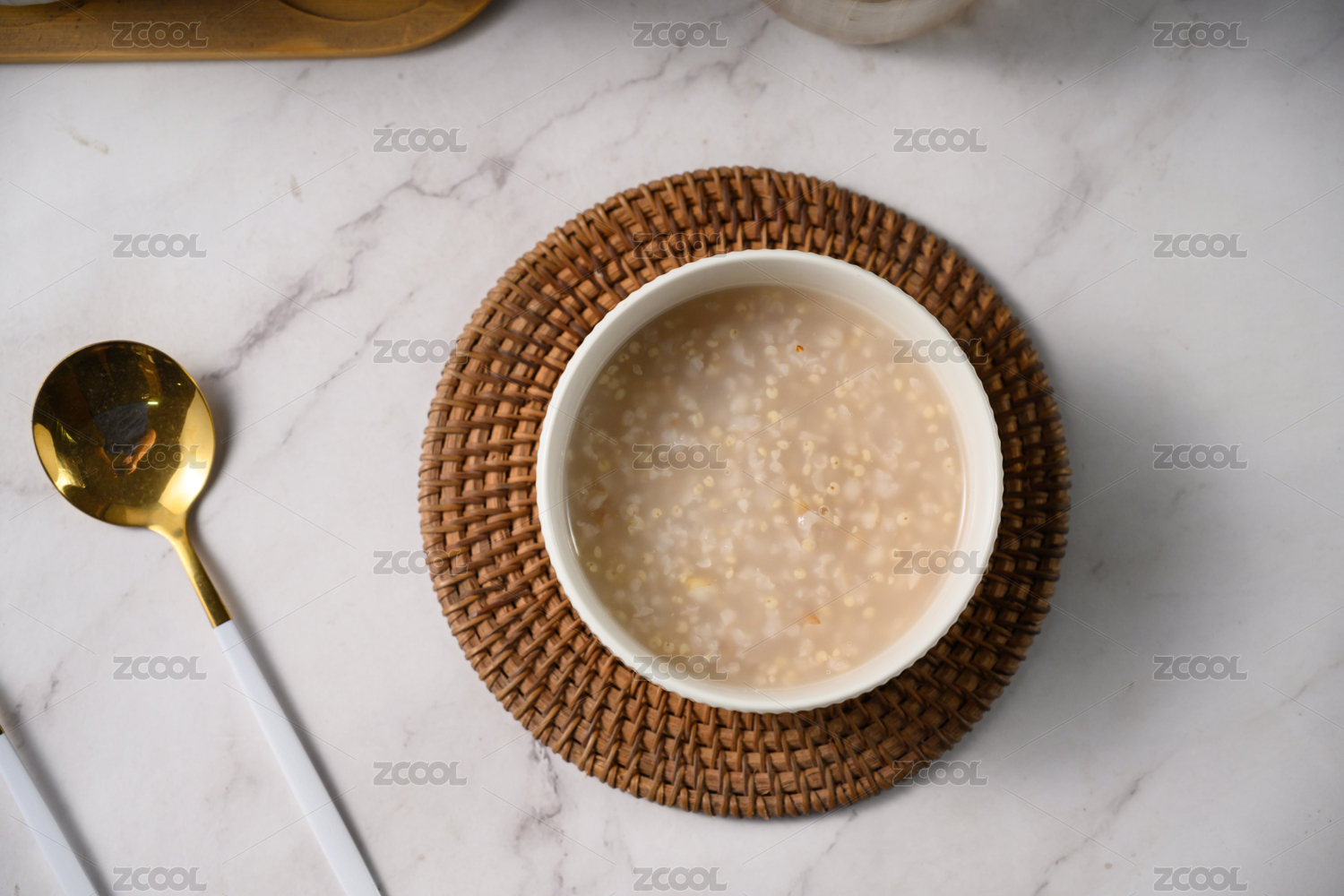 桌面上的碗里的美味可口的薏米小米粥
