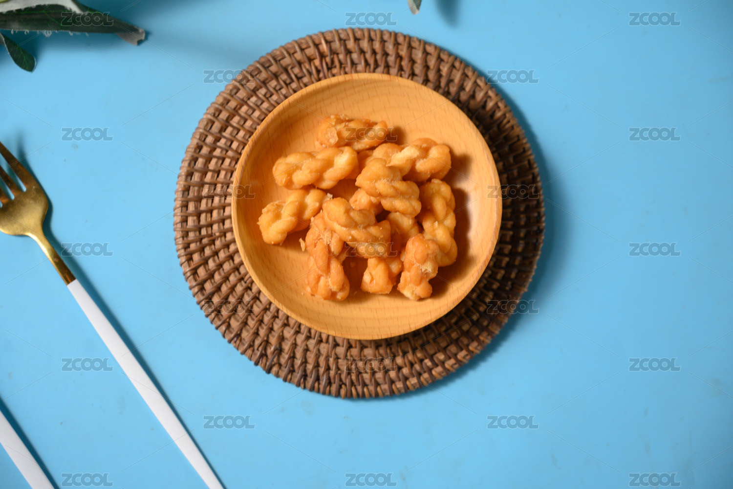 桌面上的盘子里的美味可口的巧克力鹰嘴豆片