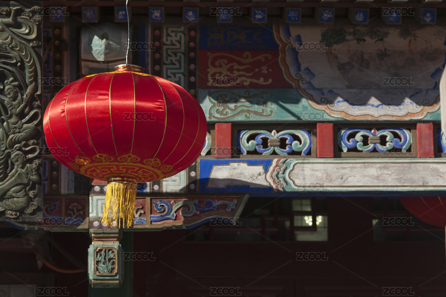 北京颐和园古建筑窗前的红灯笼