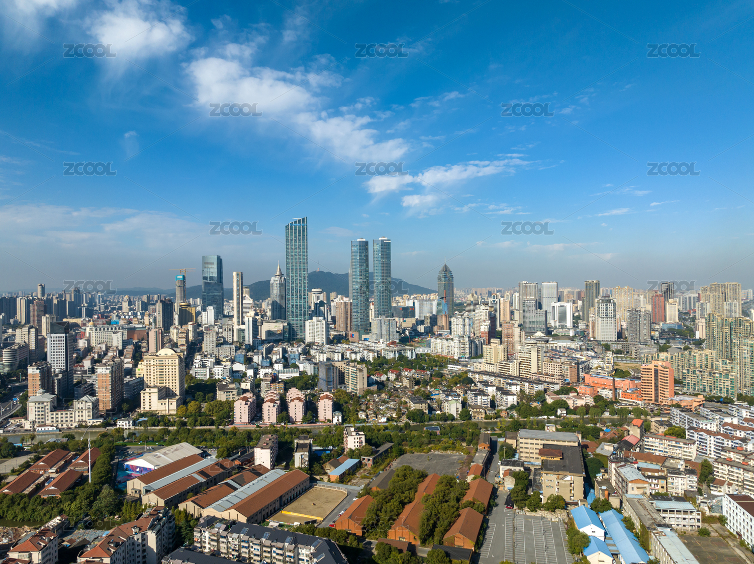 江苏无锡市城市地标建筑市中心蓝天白云风光