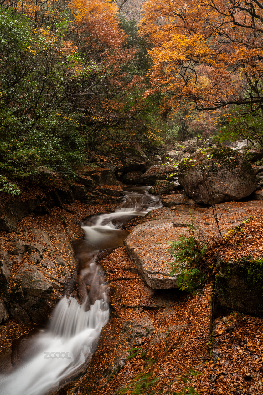 光影,地质,大箭沟,太白山,岩石,彩石,慢门,枫叶,河流,河谷