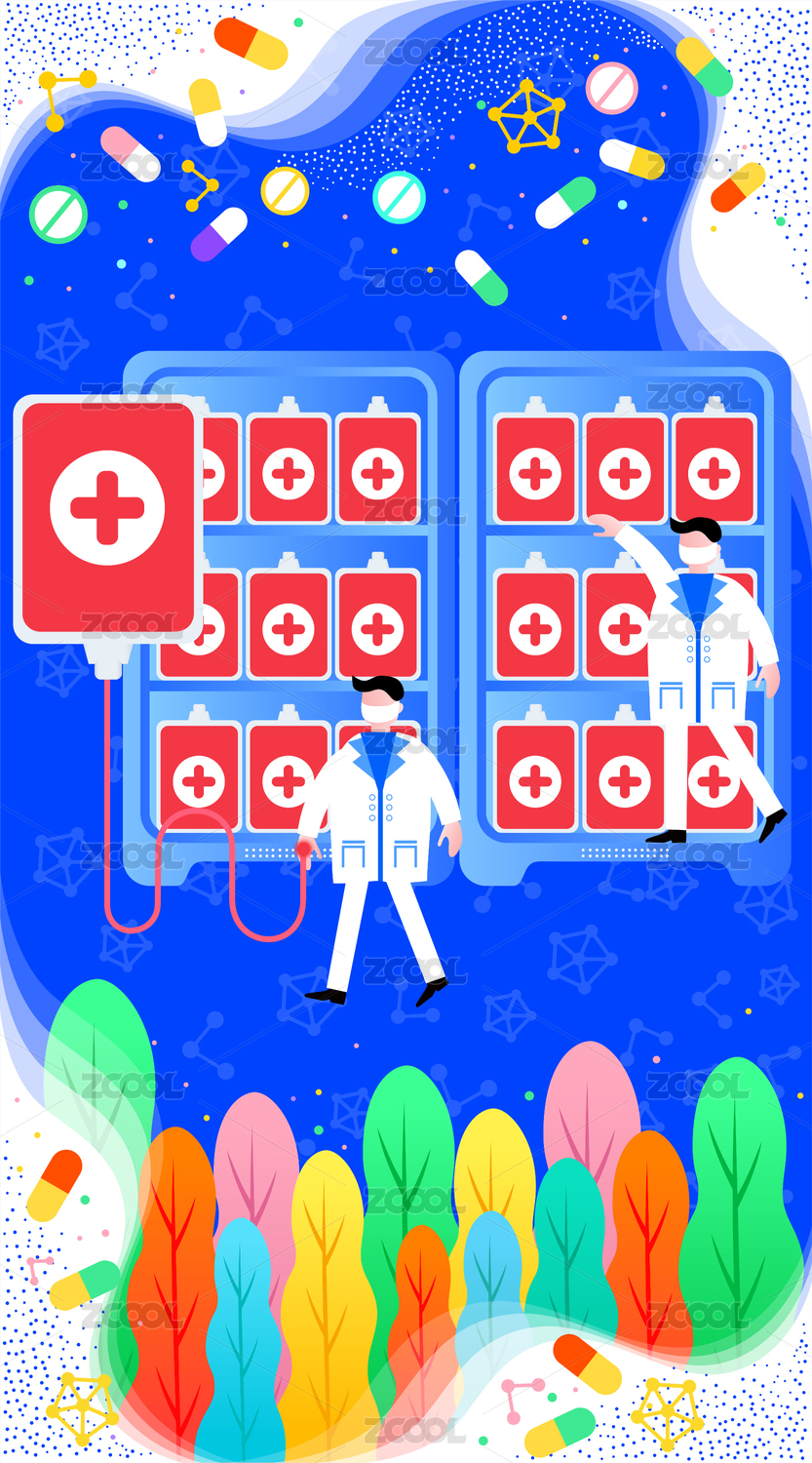 爱心无偿献血炫彩科技风扁平插画