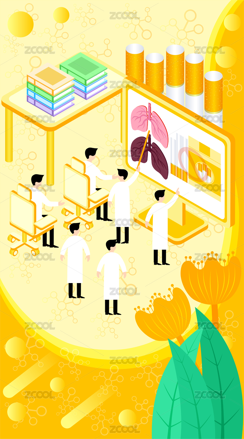 医生讲吸烟有害健康无烟日科技风矢量插画