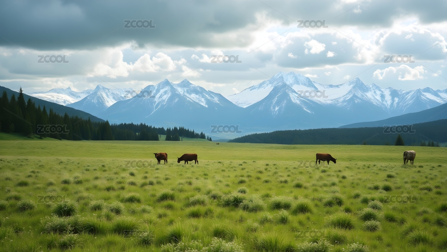 雪山草原和牛