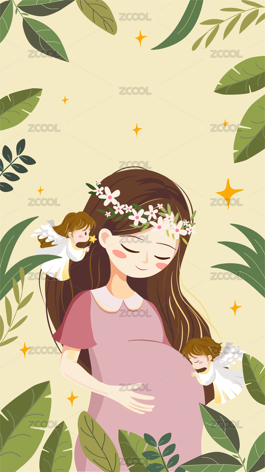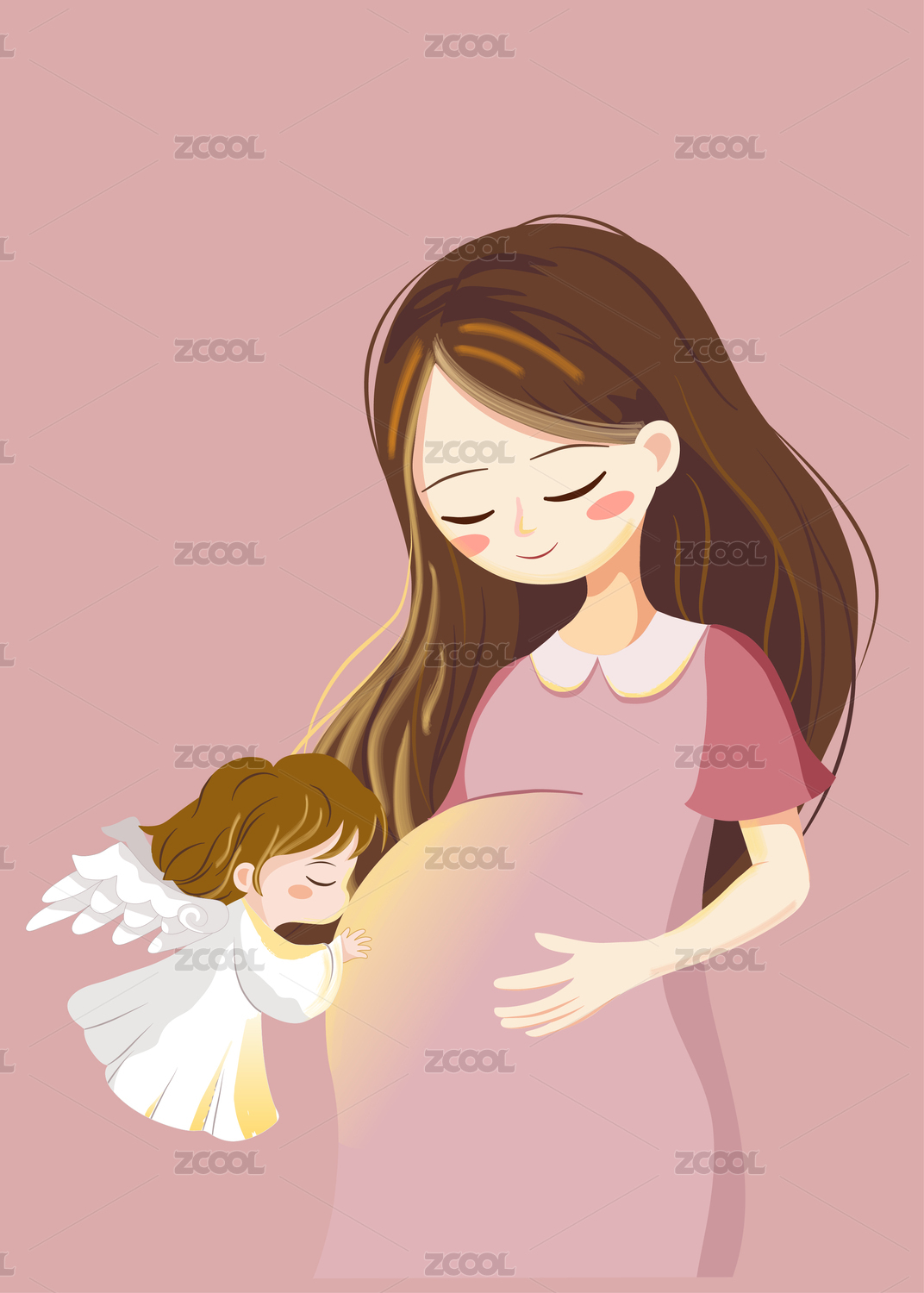 孕妇,胎儿,孕妈,准妈妈,插图,插画,矢量,海报,胎教,孕肚