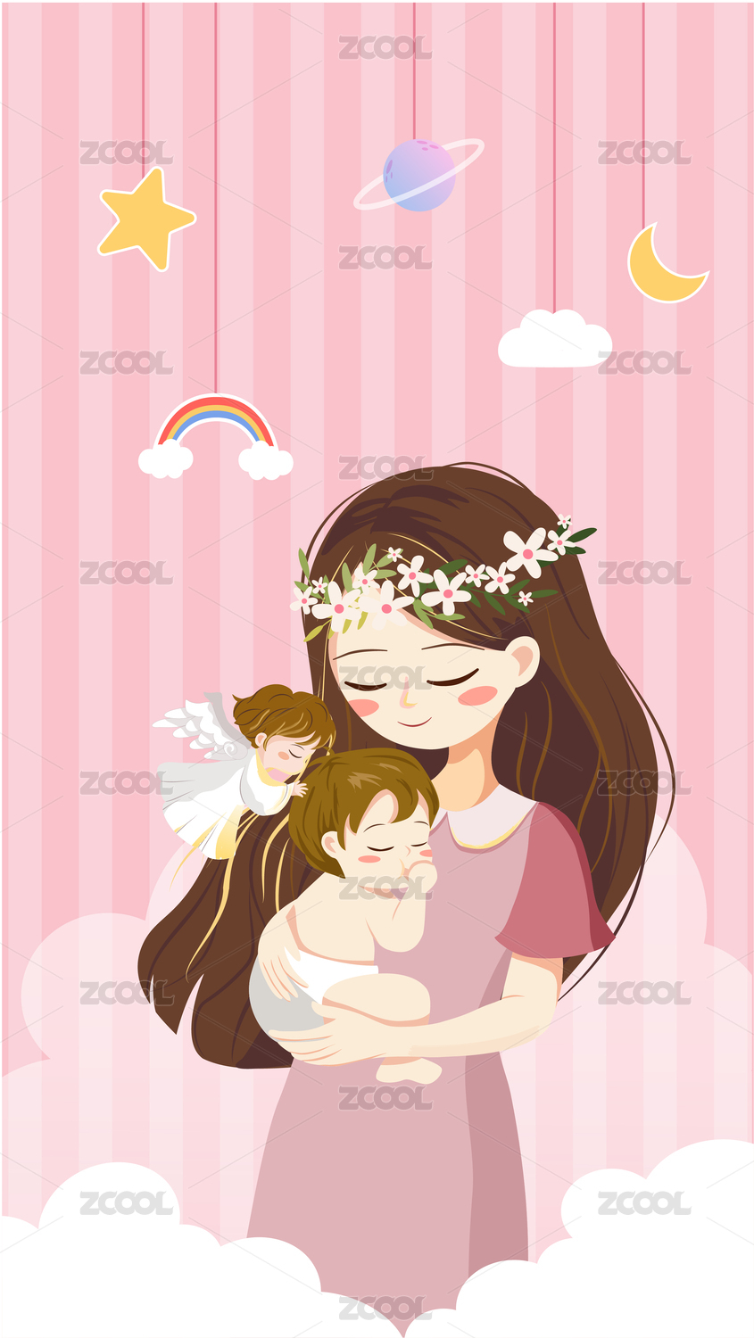 母亲节快乐孕妇妈妈儿童人物矢量插画海报