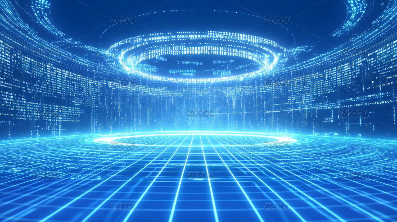 抽象蓝色粒子科幻圆形虚拟舞台背景