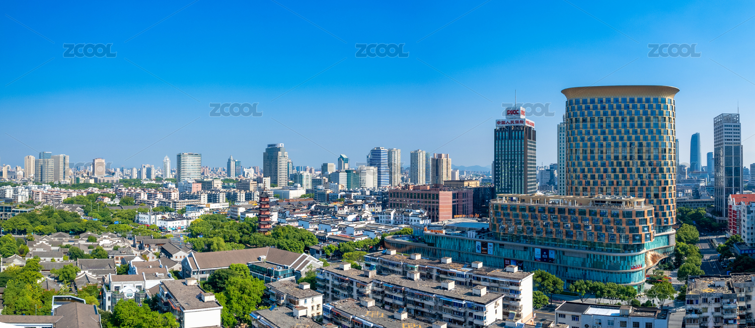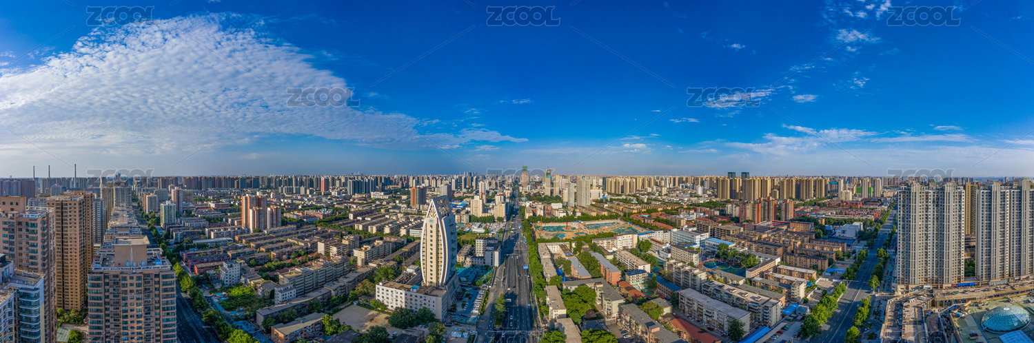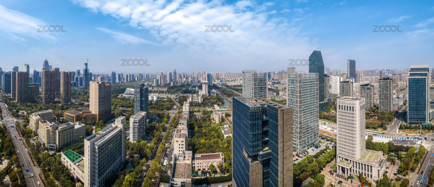 航拍郑州城市天际线树叶形状办公楼高楼大厦