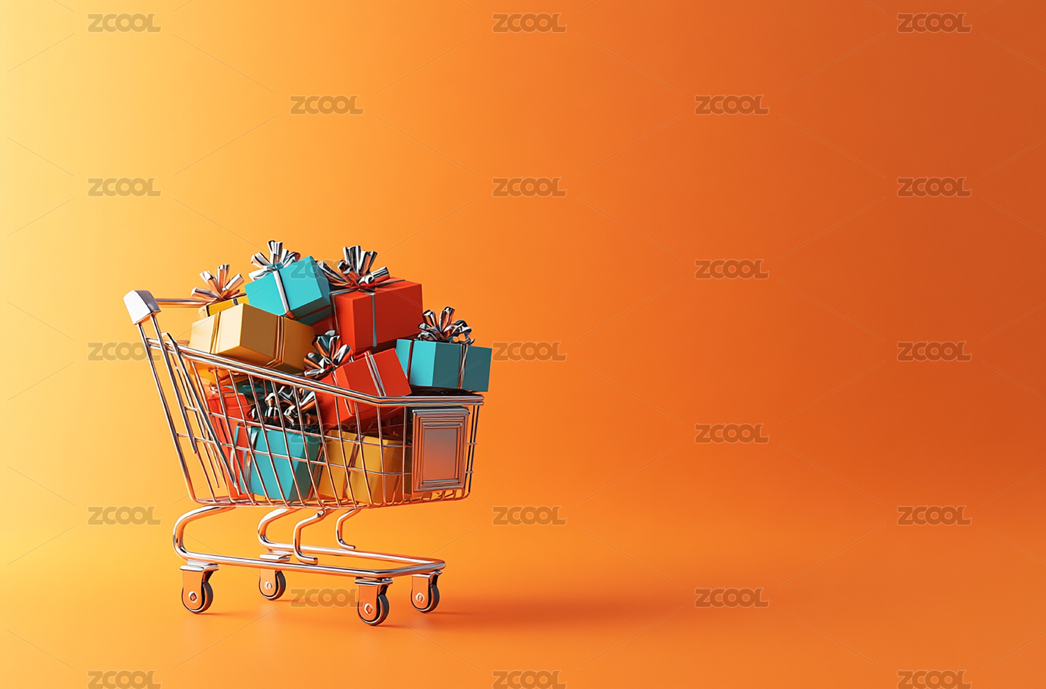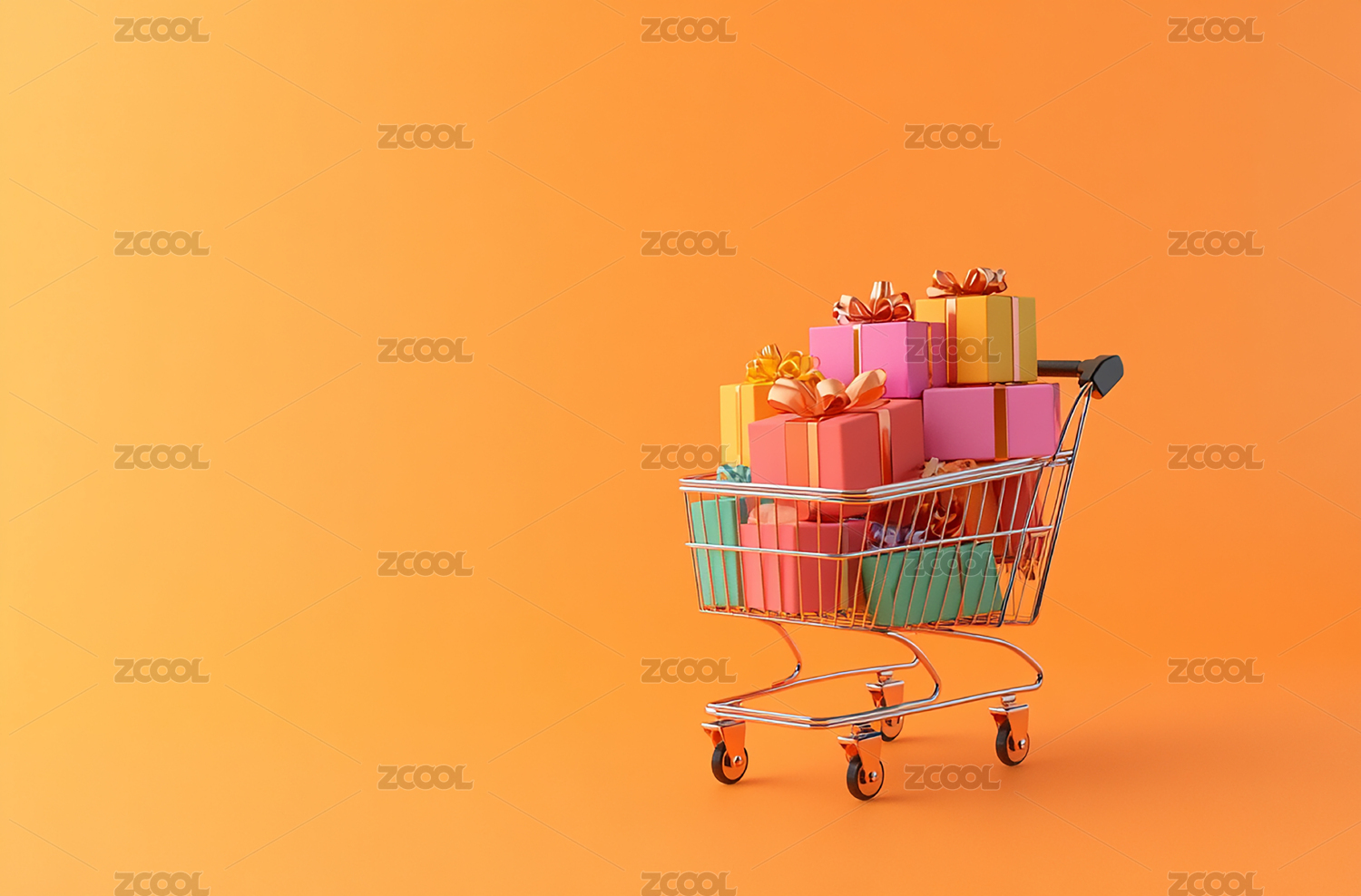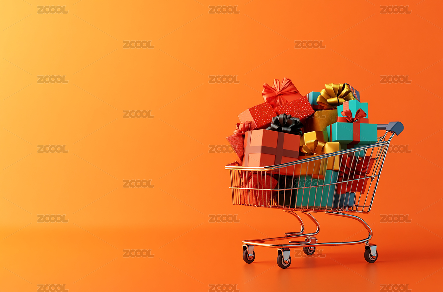 一辆装满礼盒的购物车