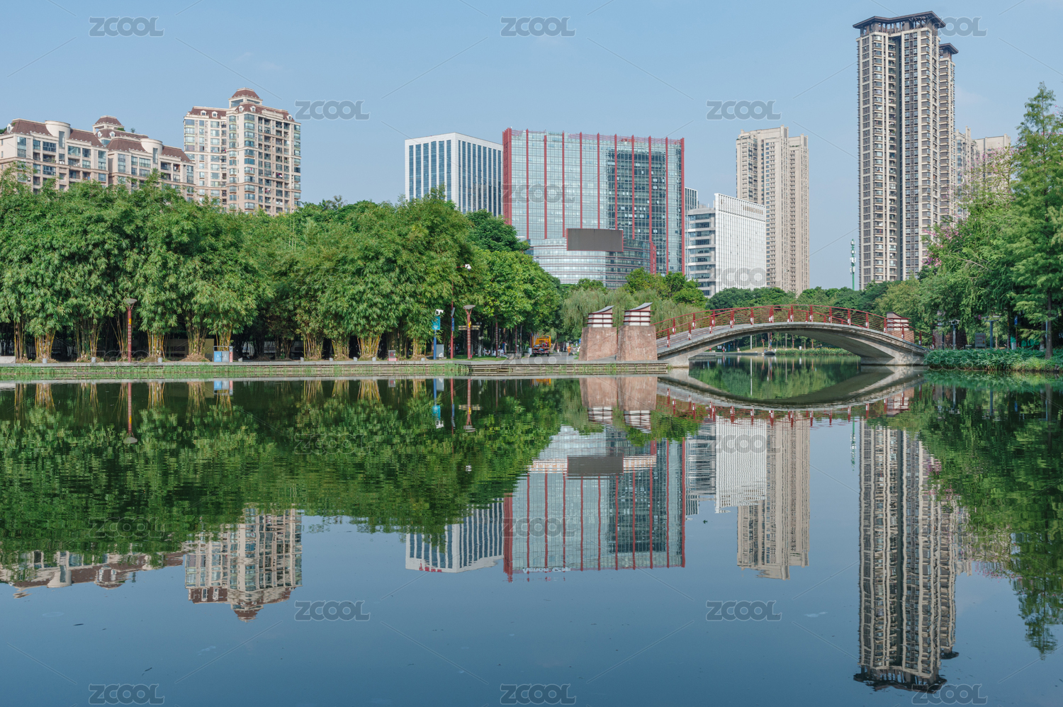 佛山千灯湖公园湖泊树林与城市高楼建筑