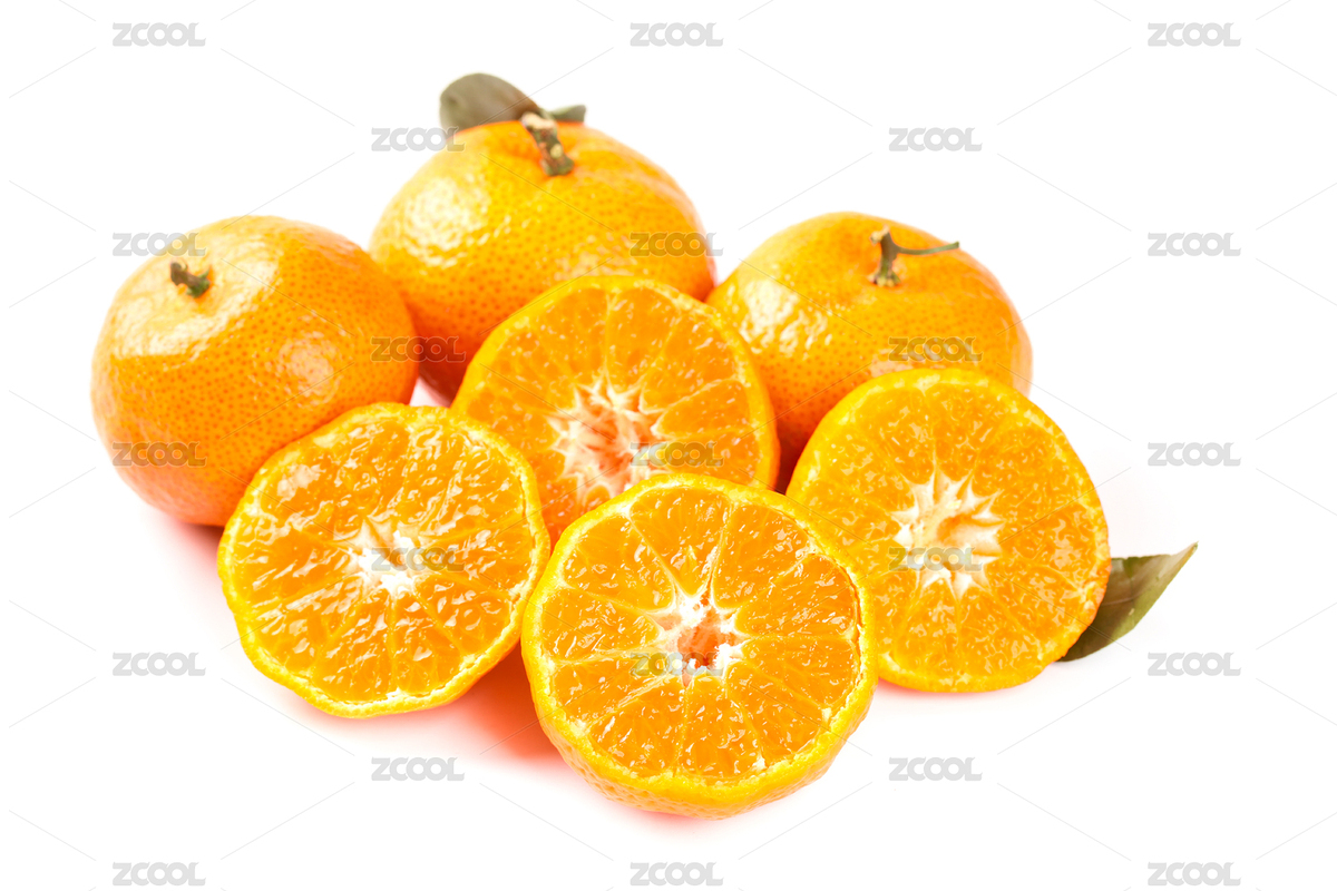 白底上放着一堆广西砂糖橘和切面的蜜橘