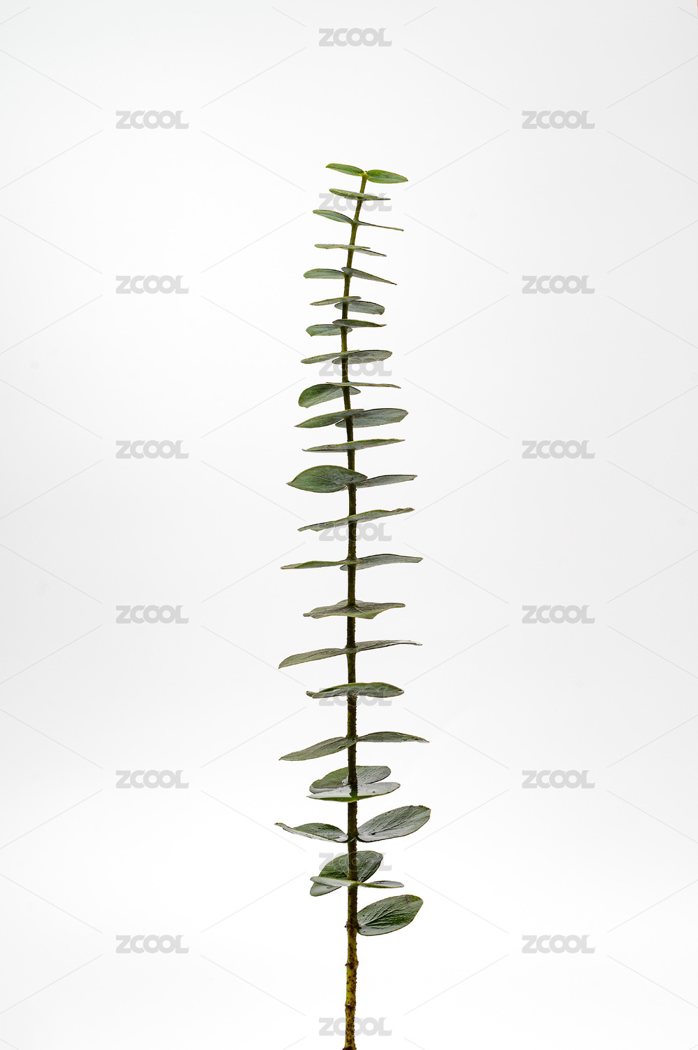 一支绿色的银叶桉(尤加利)在纯白背景中