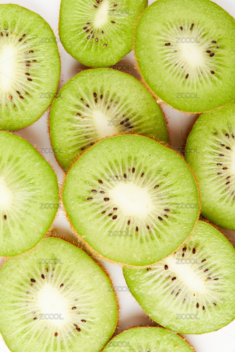 白底上摆放着猕猴桃切片