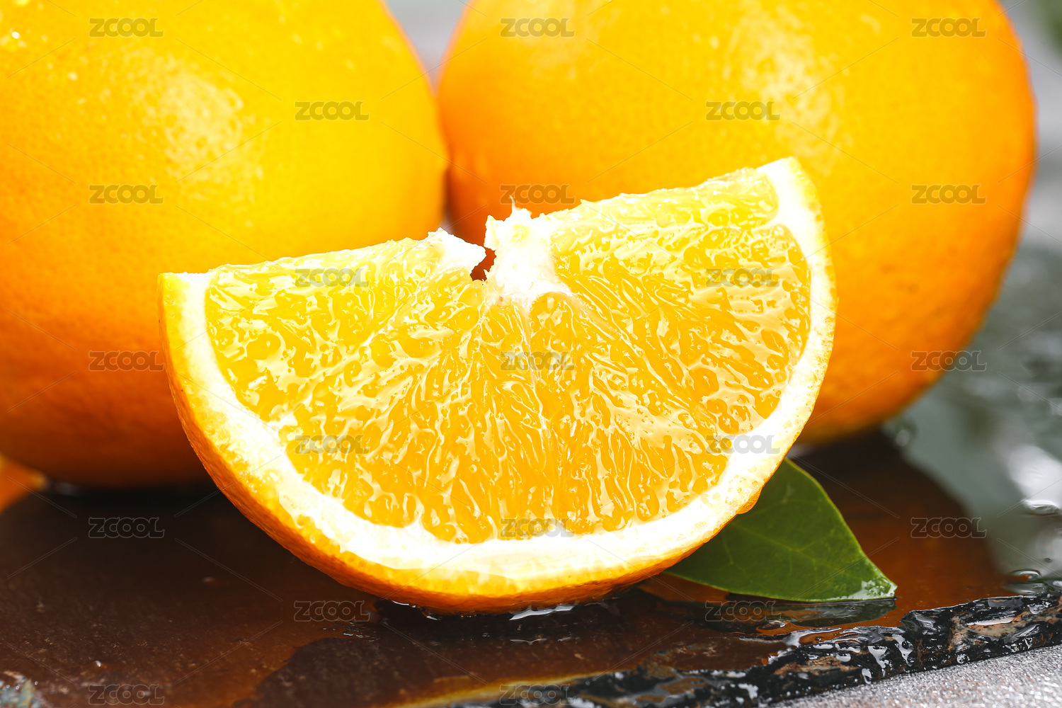 黑石底上放着一个黔阳冰糖橙和切块的橙子